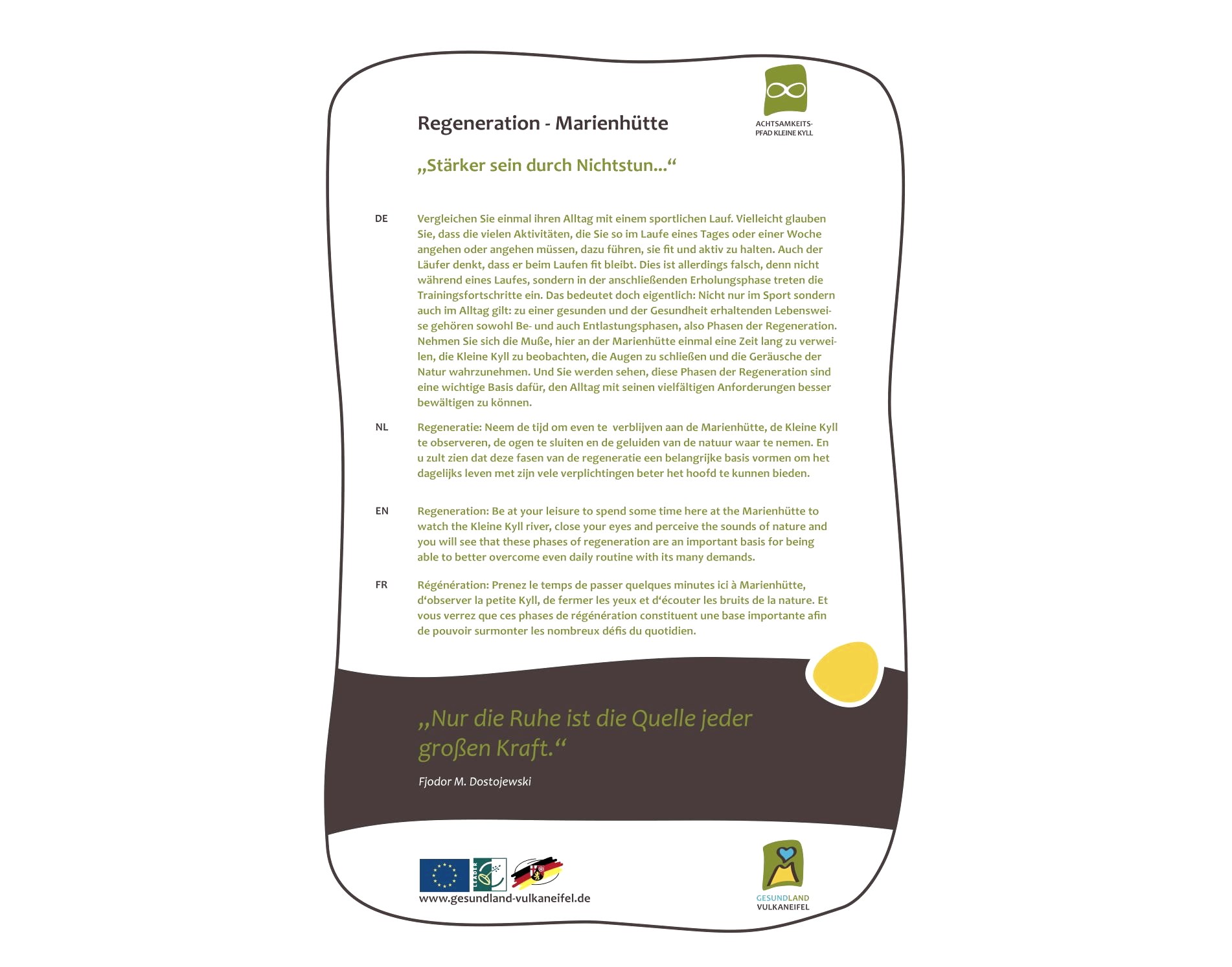 "Nur die Ruhe ist die Quelle jeder großen Kraft." Ein Zitat von Fjodor M. Dostojewski.