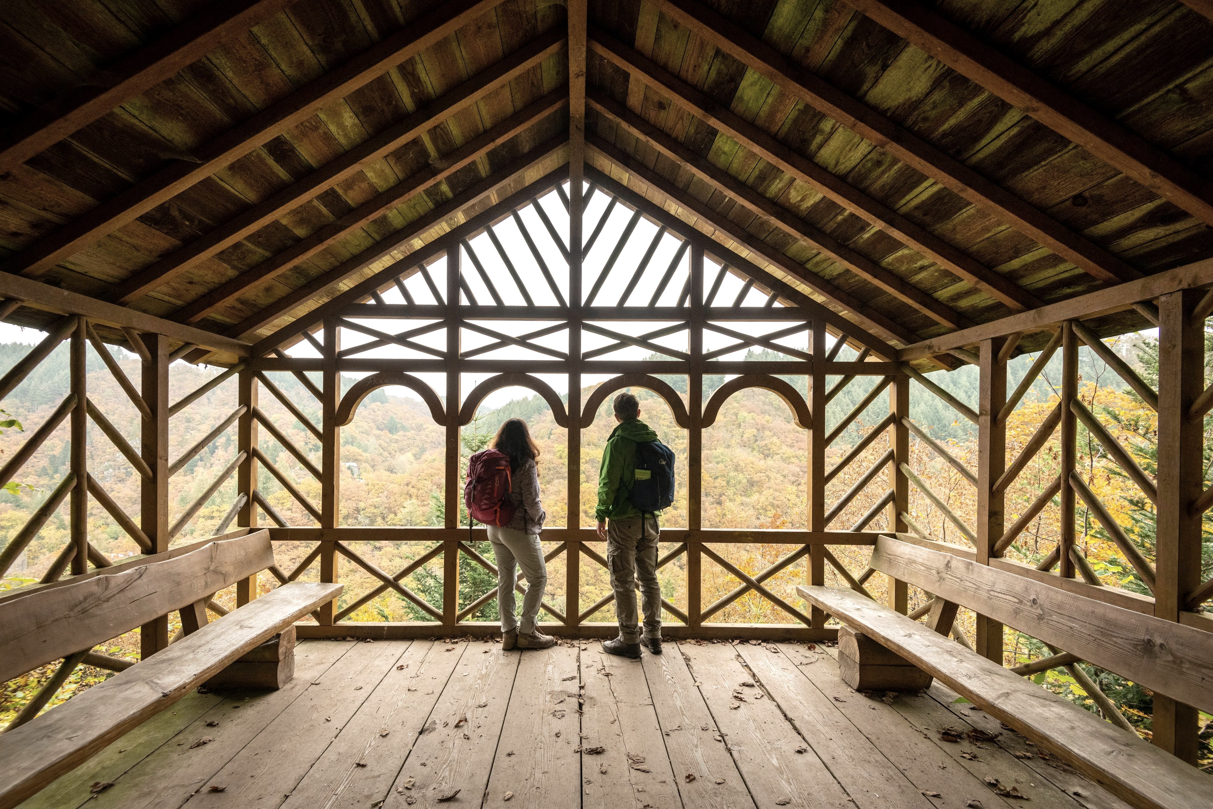 Die offen gestaltete Hütte wurde vom ehemaligen "Verschönerungsverein" erbaut und 1995 nach altem Vorbild wieder aufgebaut. Früher fanden hier sogar Kurkonzerte statt. Heute ist sie ein wunderschöner Platz für eine Rast während einer Wanderung rund um Manderscheid.