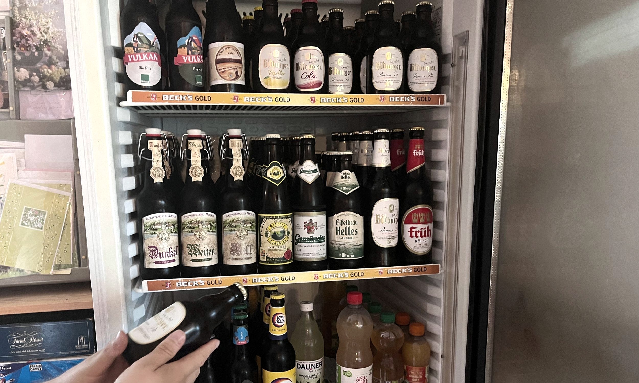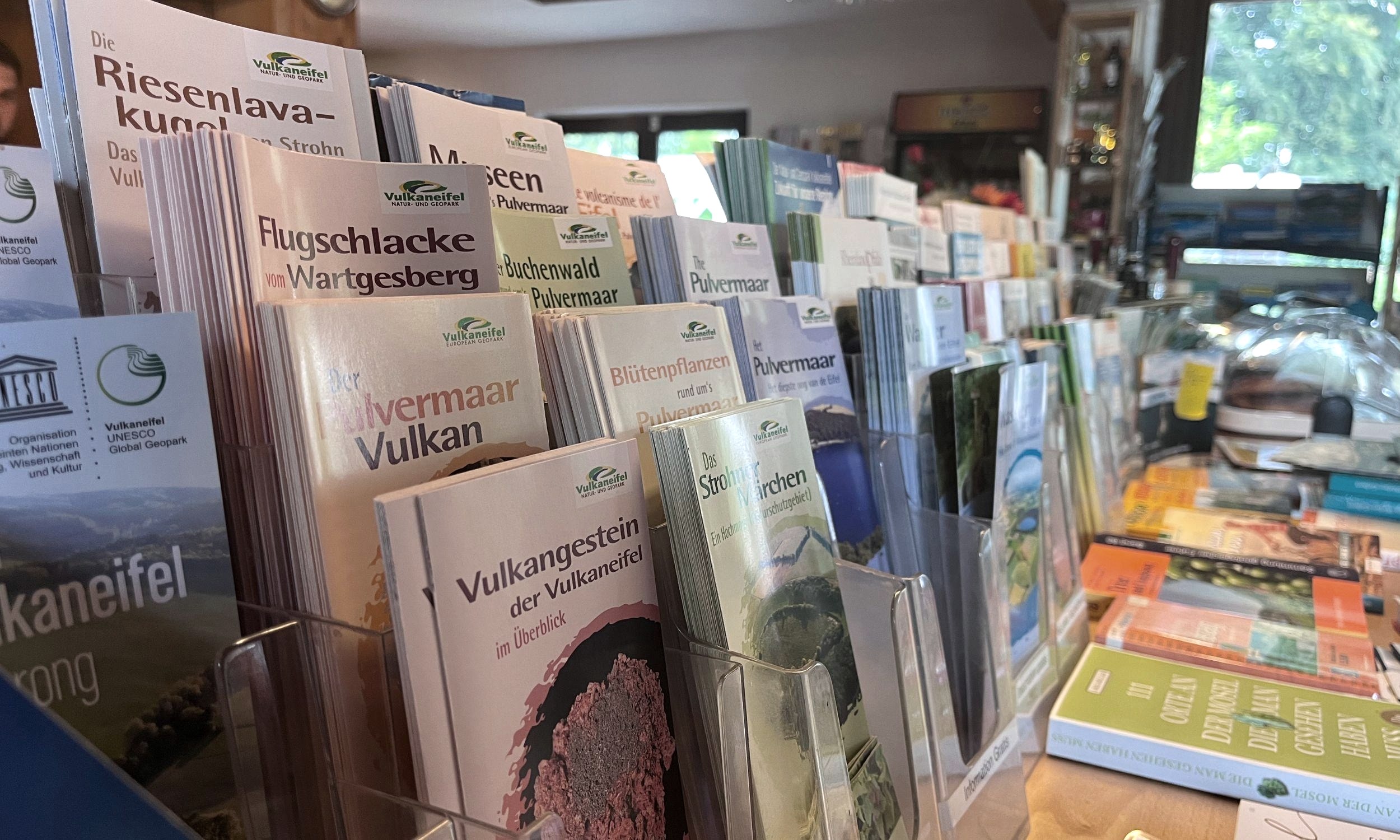 Im Gästehaus ist alles unter einem Dach vereint: Rezeption, Kiosk, Imbiss, Brötchenverkauf, Touristeninformation und WLAN-Hotspot. Zudem gibt es ein gemütliches Café mit Imbiss. Innen laden beheizte Sitzplätze zum Verweilen ein, während draußen eine große Terrasse zur Verfügung steht. Die Getränkekarte bietet allerlei Eifeler Spezialitäten, während auf der Speisekarte herzhafte Salate – auf Wunsch mit Fleischbeilage –, Kaffee und Kuchen vom lokalen Bäcker zu finden sind.