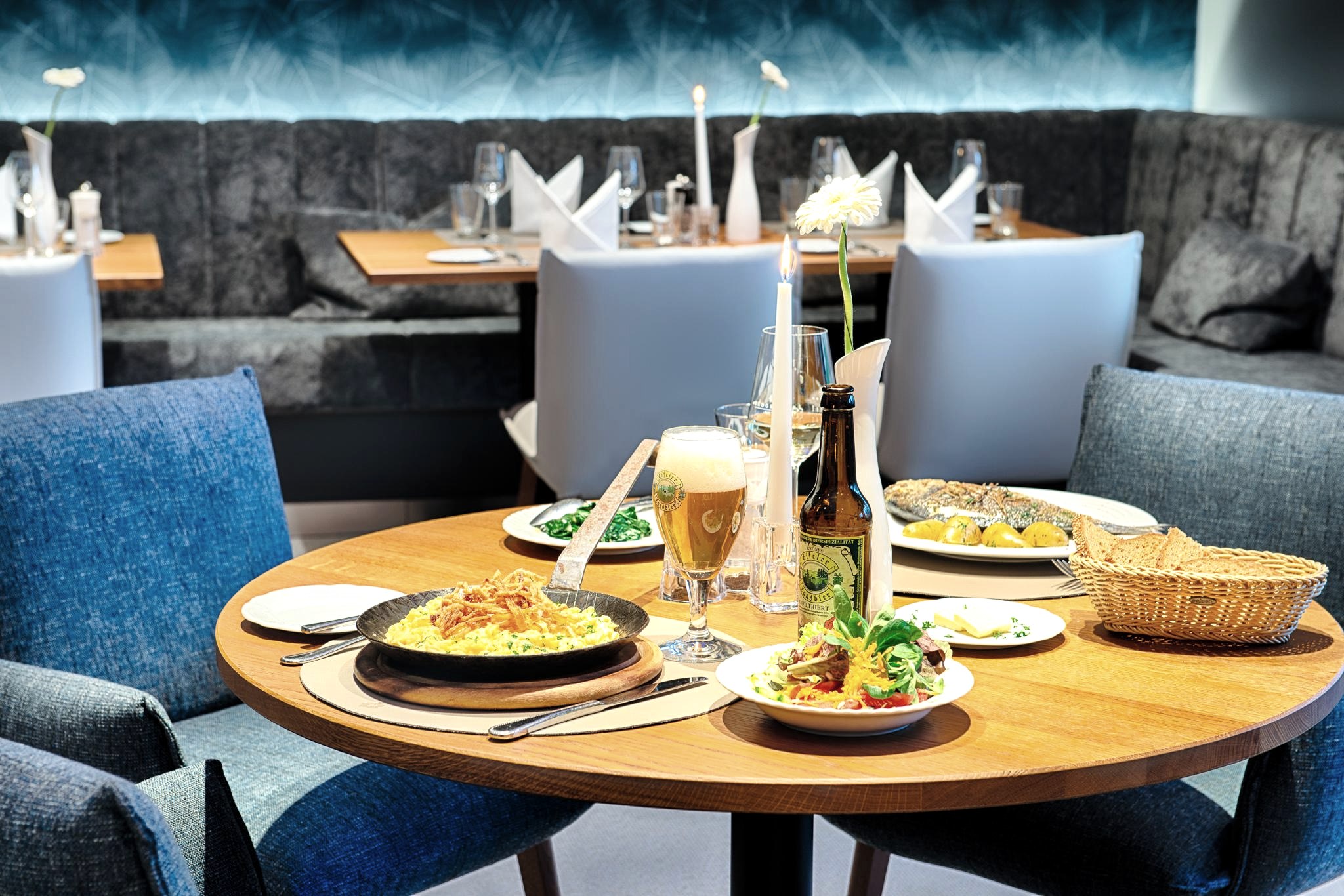 In unserem Gastronomie - Bereich favorisiert Küchenchef Andreas Zahn eine saisonale Küche, die Ihre Heimat in der Eifel hat. Die Speisekarte bietet für jeden Geschmack ganz sicher das Richtige und Sie können einen Tag genussvoll ausklingen lassen. Regionale Spezialitäten – natürlich stets aus frischen Zutaten, dazu ein köstlicher Tropfen aus dem Weinkeller. Lassen Sie sich verwöhnen!
