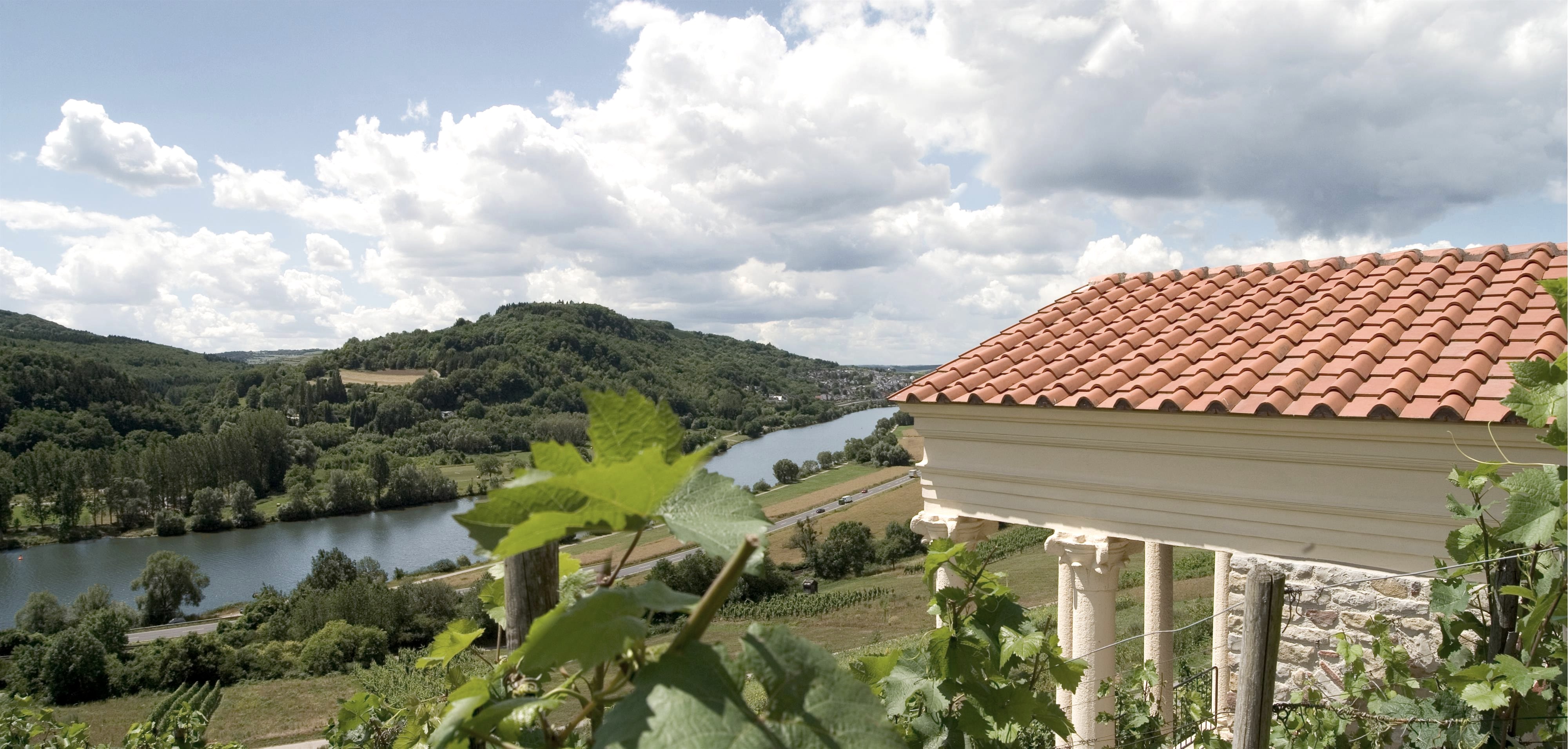 Mitten in den Weinbergen bei Igel kann man einen spätantiken Grabtempel besichtigen. Ein schöner Ort für eine letzte Ruhestätte, früher wohl aber an einer viel frequentierten Römerstraße gelegen. Wer wurde hier bestattet? Vielleicht die Eigentümer des großen Gutshofes, der im Tal lag. Das Untergeschoss diente der Körperbestattung, und es standen Sarkophage dort, möglicherweise ähnlich angeordnet wie die römischen Speisesofas bei einem Festmahl. So war es jedenfalls in einem vergleichbaren Grabtempel in Trier. Heute ist der Raum leer und wurde bis zur Jahrtausendwende noch als Weinberghäuschen genutzt. Das Obergeschoss hat man wiederaufgebaut. In der Antike war es ein würdiger Ort, um der Toten zu gedenken. Heute kann man zwischen den Säulen bei schöner Aussicht standesamtlich heiraten.