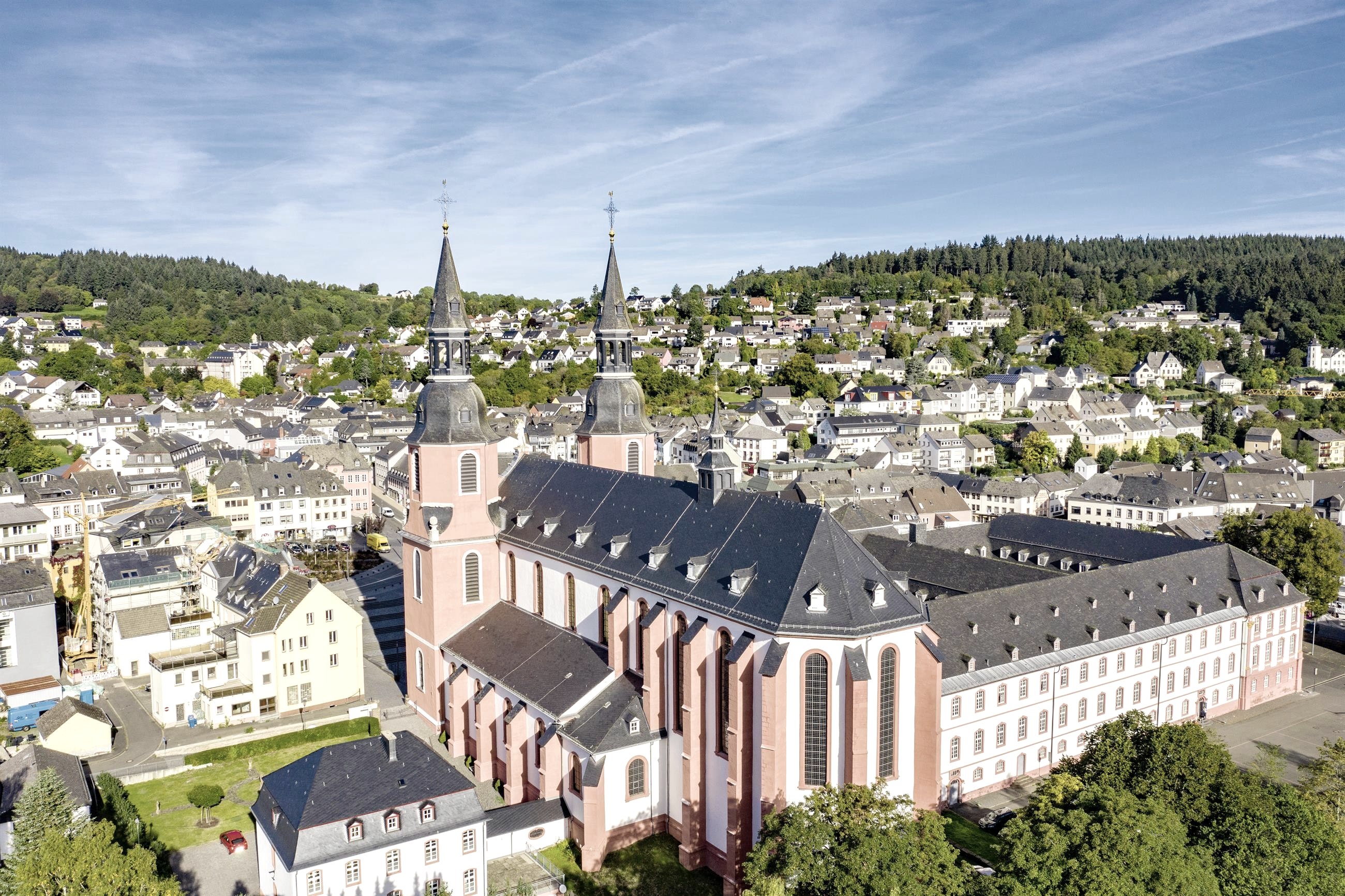 Karl der Große ließ die erste Salvatorkirche erbauen. Als Aufbewahrungsort der Reliquie "Sandalen Christi" war die Abteikirche der Benediktiner-Abtei Prüm so kostbar ausgestattet, dass sie "Goldene Kirche" genannt wurde.
