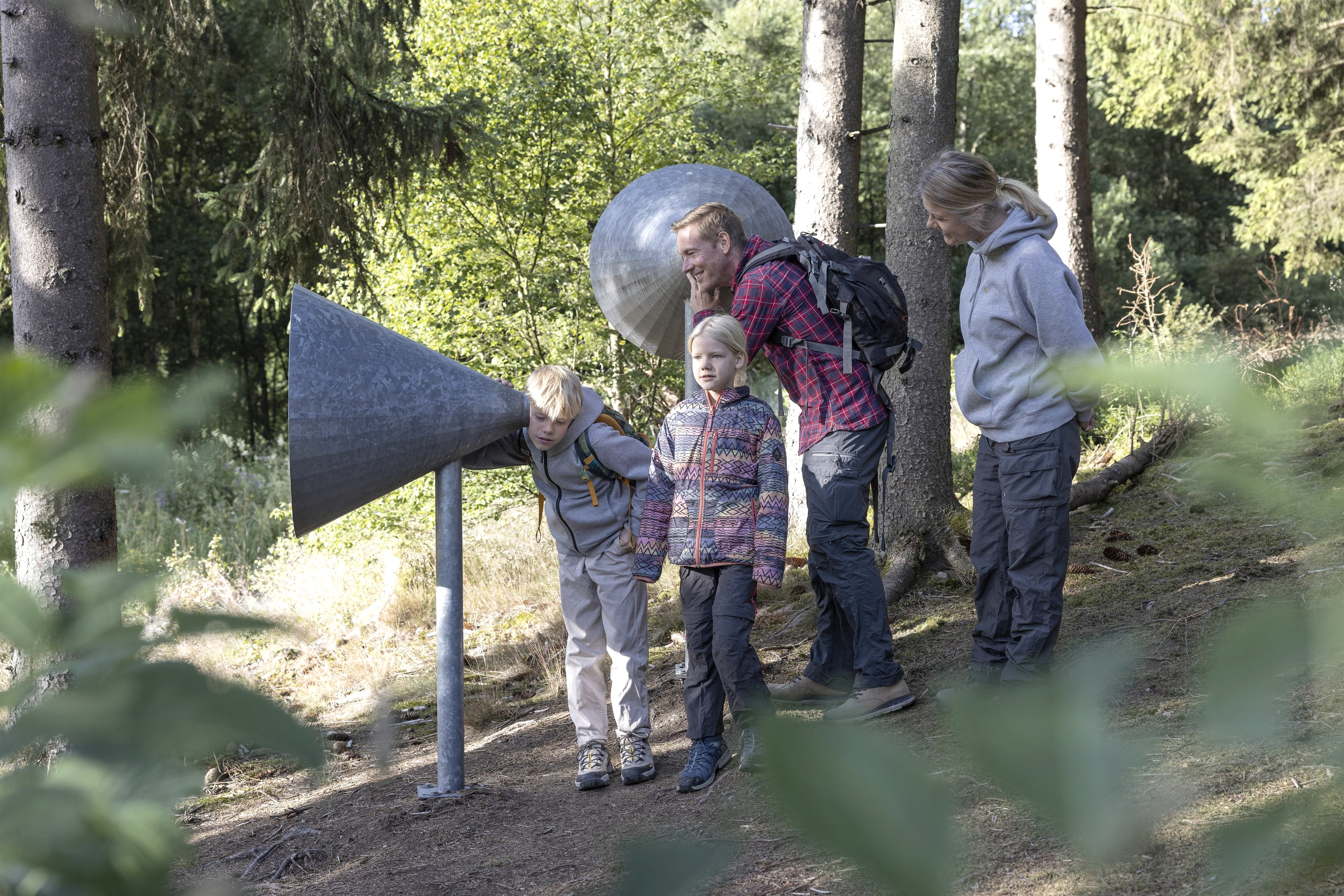 Der Waldparcours setzt sich aus den Stationen Baumstammwippe, Tierweitsprung, Spinnennetz-Kletterbalken, Balancier-Parcours, Baumstammtelefon, Fuchstunnel, Waldboden-Spinnennetz, Hörtrichter und Holzpolter-Ruheliege zusammen. Kleine und große Abenteuerfans lernen an den Abschnitten zum Beispiel spielerisch, wie sich ein Fuchs in seinem Bau fühlt, wie sich Vögel unterhalten oder auch wie weit ein Hirsch eigentlich springen kann. Um die umliegende Natur weitestgehend intakt zu lassen, sind die verschiedenen Elemente mit Steinen oder Stämmen verbunden. Ziel ist es, den Waldboden nicht zu berühren. Darüber hinaus gibt es auch ein eigenes Waldparcours-Spiel, bei dem an verschiedenen Stellen der Strecke sieben goldene Tannenzapfen versteckt sind. Wer am schnellsten sicher über den Parcours balanciert und die Zapfen sammelt, hat gewonnen.