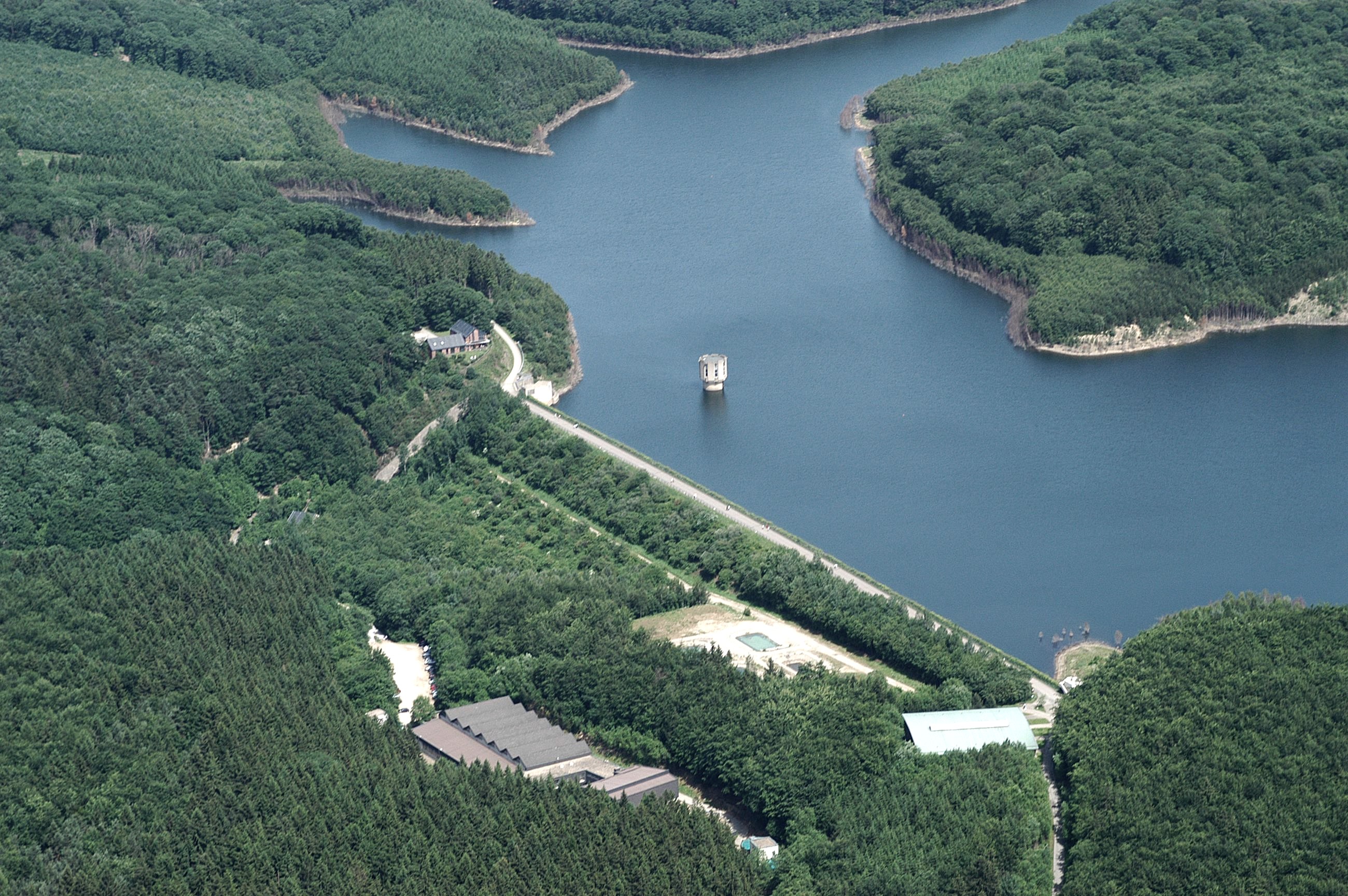Beeindruckend auch noch heute: Die frühere Landstraße Nummer 11 zwischen Kleinhau und Schevenhütte verläuft quer durch die Wehebachtalsperre und wurde durch die Stauung des Wehebachtals unpassierbar.