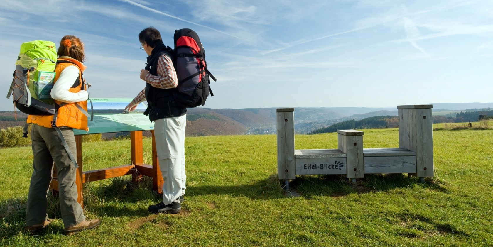 Aussichtspunkt mit Schutzhütte und wunderbarem Blick auf Olef.Verschlungene Pfade führen durch den Wald im Oleftal bis hinauf zur Kuckucksley.
