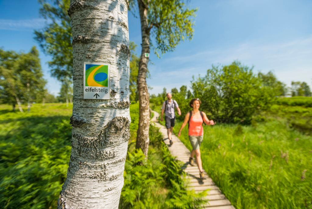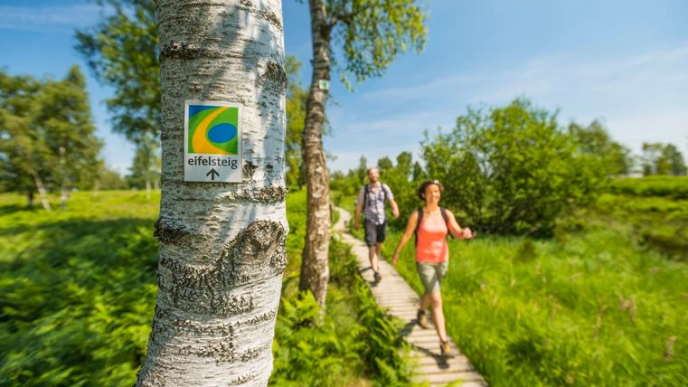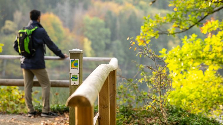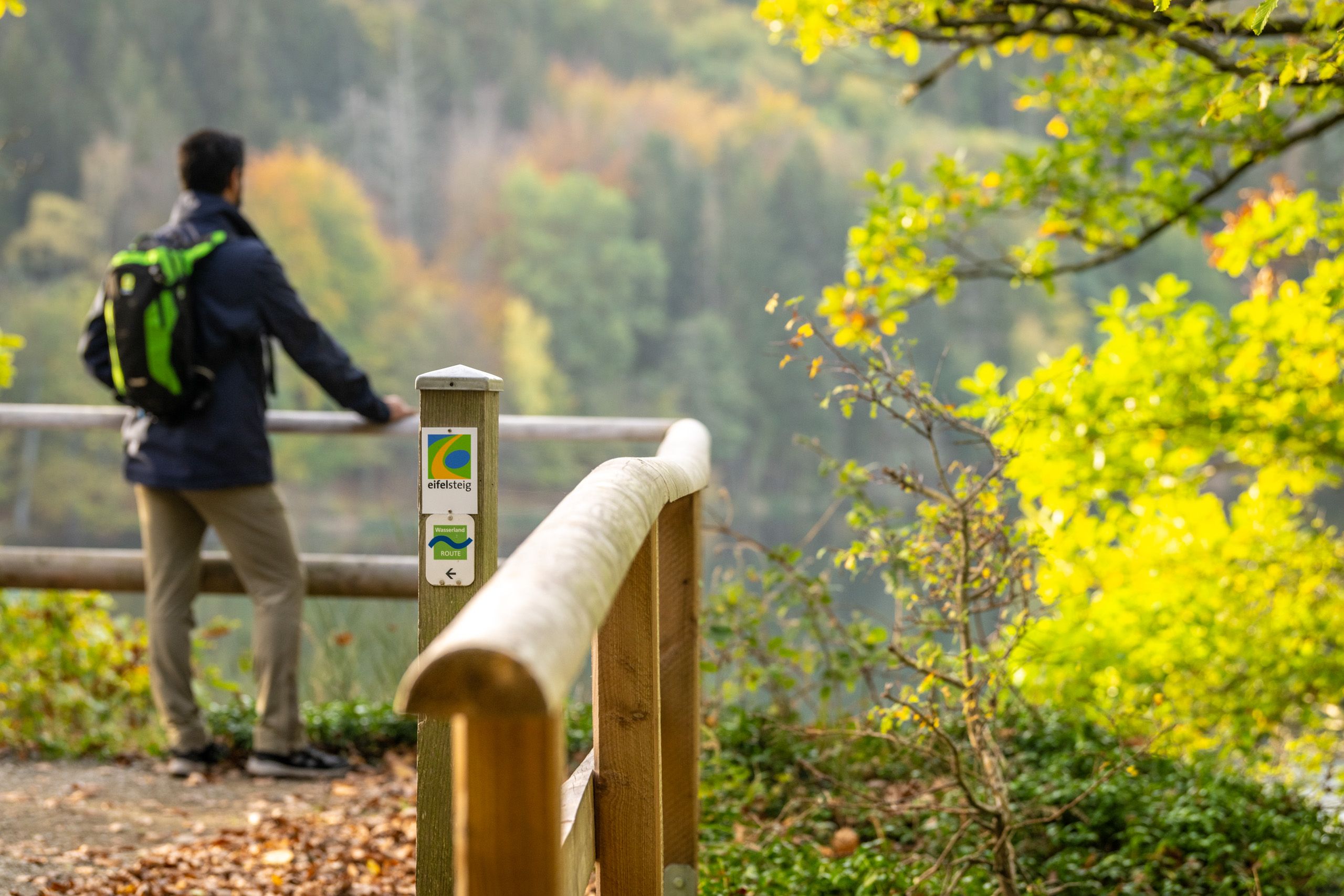 Jeder Tag ist anders, immer neue Eindrücke, Ausblicke, Erlebnisse. Finde Deinen Rhythmus, sei eins mit der Natur, bewege dich auf den Spuren der Elemente Wasser, Luft, Feuer und Erde. Es ist ein großes Abenteuer, den Eifelsteig mit seinen 15 Etappen in einem Stück zu wandern. Als Belohnung warten unvergessliche Momente auf dich. Durchstreife den flachen Norden bei Aachen über das hohe Venn, vorbei an den imposanten Stauseen, hinein in den Nationalpark Eifel mit seinen unberührten Buchenmischwäldern und dem offenen Grasland der Dreiborner Hochfläche.