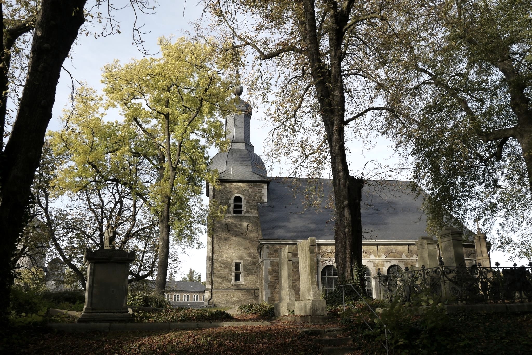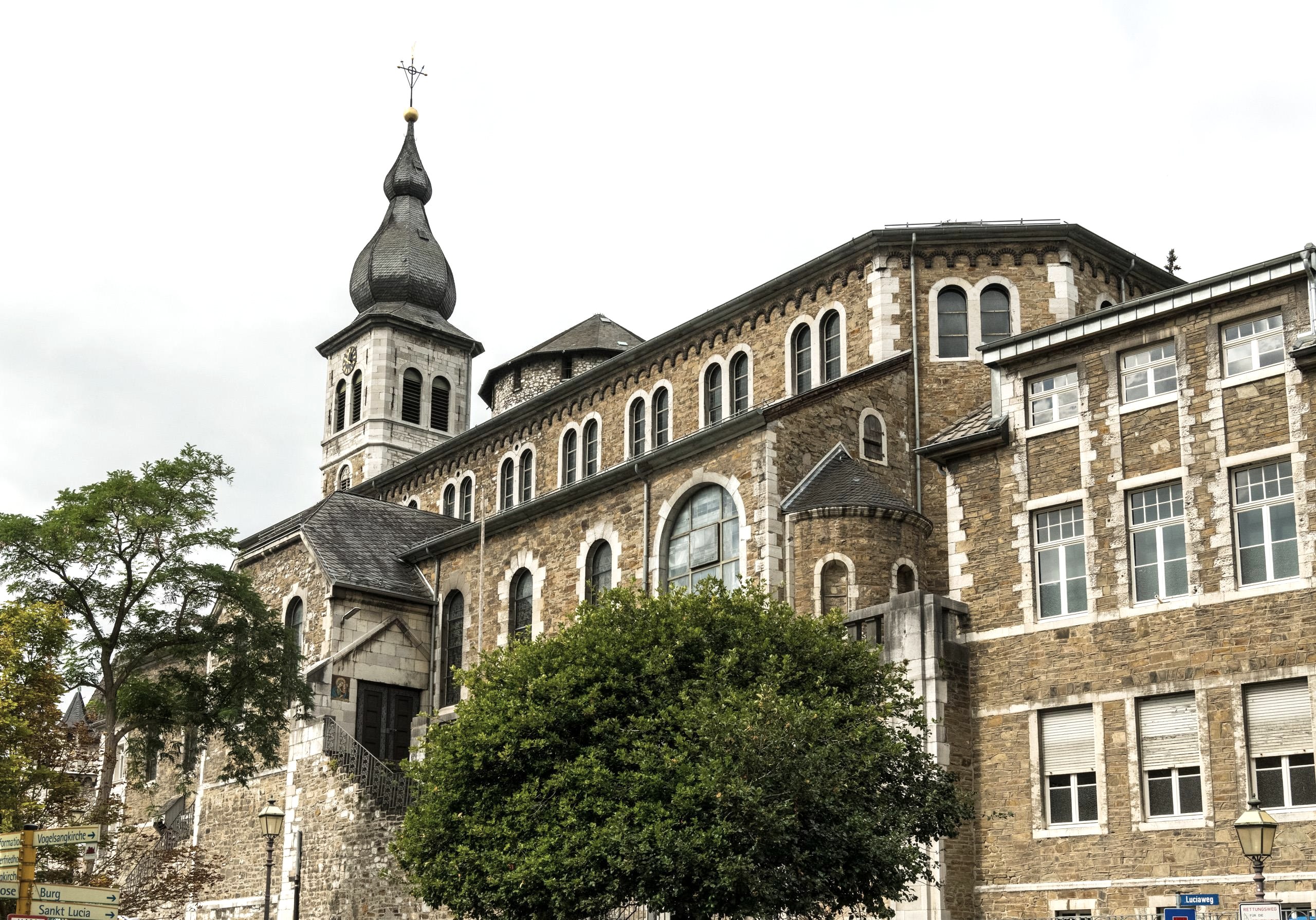 From the church forecourt located above the old town, visitors can enjoy the most famous view of Stolberg's old town with its castle and the Catholic Church of St. Lucia. The Reformed or Protestant Finkenberg Church was built in the years 1688 (completion of the tower) to 1725 (consecration of the nave) in place of its preceding building, a small wooden church from 1618.