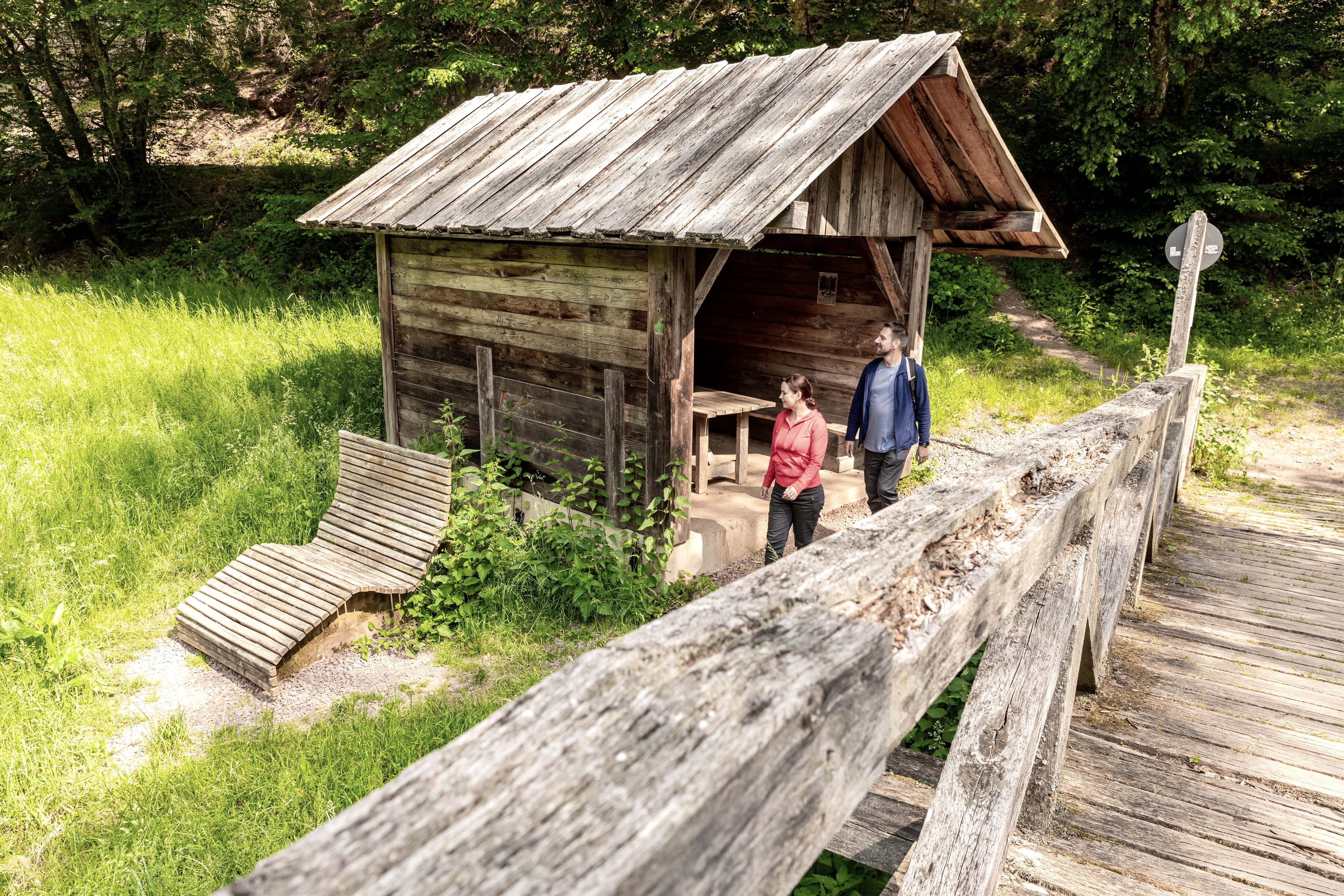 The Blümchesaushütte is located in the Liesertal valley in the Eckfeld district, right next to the Urpferdbrücke bridge. The Eckfeld dry maar is very close by. The Eifelsteig and Lieserpfad trails lead past this hut. The Blümchesaushütte is an ideal place to take a break during your hike through the Lieser Valley on the Lieser Trail or the Eifelsteig.