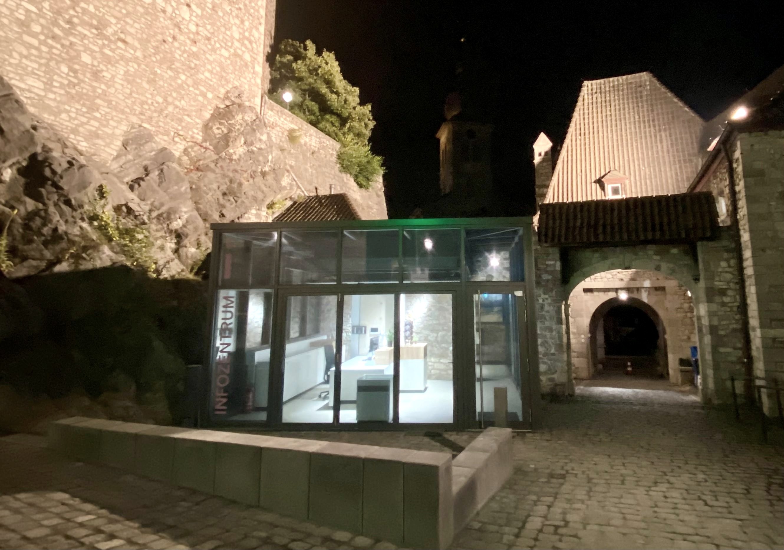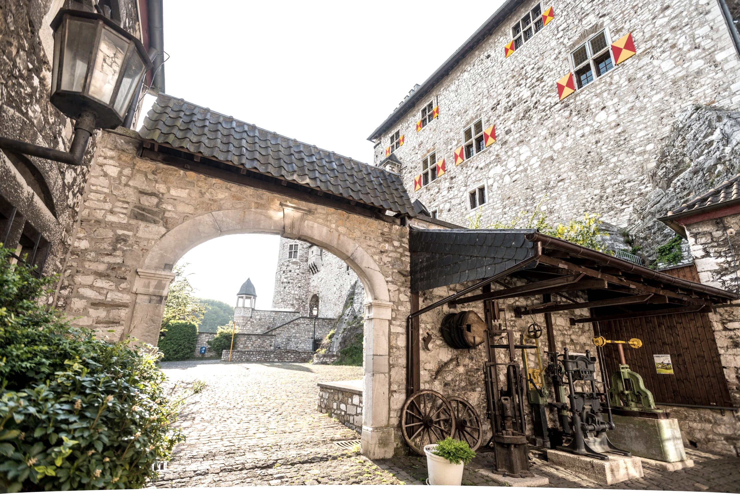 The castle, which dates from the 15th century, is now used as a museum & event location. The castle gallery is used for art exhibitions, the knight's hall as a venue for concerts, celebrations, etc. The former vaulted cellar today offers cultivated hospitality in a romantic ambience. The castle, originally dating from the 12th century, was destroyed in 1375 and replaced by a late medieval complex around 1450. The historicist reconstruction of 1888-1909 by the industrialist Moritz Kraus and the redesign in 1950-1956 changed the character of the castle considerably. All in all, it has a remarkable mixture of medieval, historicist and Renaissance elements. The 1909 Torburg houses the "Museum in the Torburg" with exhibits from the history of craftsmanship and industry.