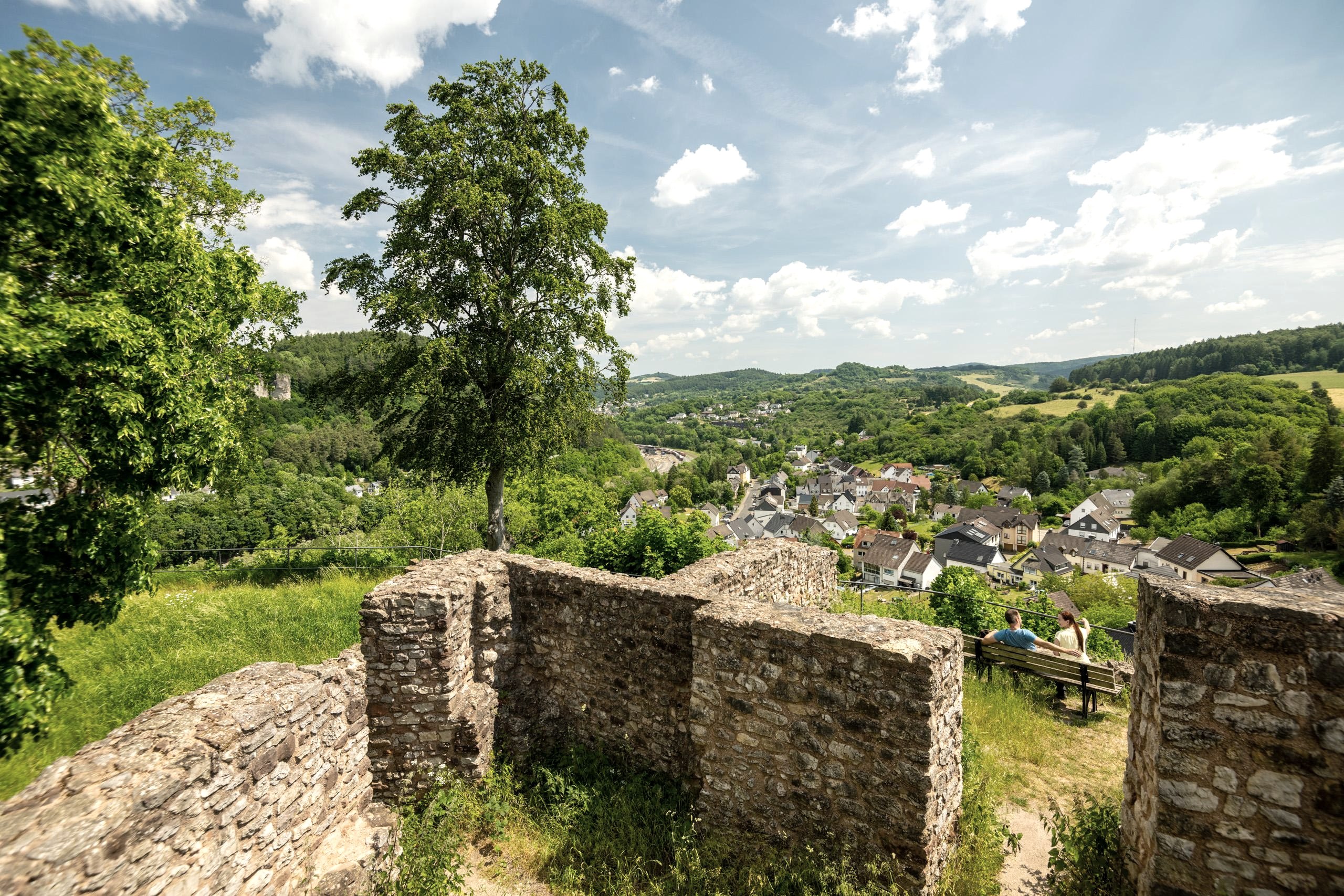 High above Gerolstein lies the ruins of the medieval Löwenburg. Gerhard VI of Blankenheim (1314 – 50) was named after the castle Gerhardstein, today known as Löwenburg. The castle was destroyed in the War of the Palatinate Succession in 1691 and never rebuilt. Today, the 11 m high shield wall as well as the remains of residential buildings remind of its once great importance as a royal seat. The castle ruin is open all year round and offers a wonderful view over Gerolstein, the Dolomites massif and the Kyll valley.