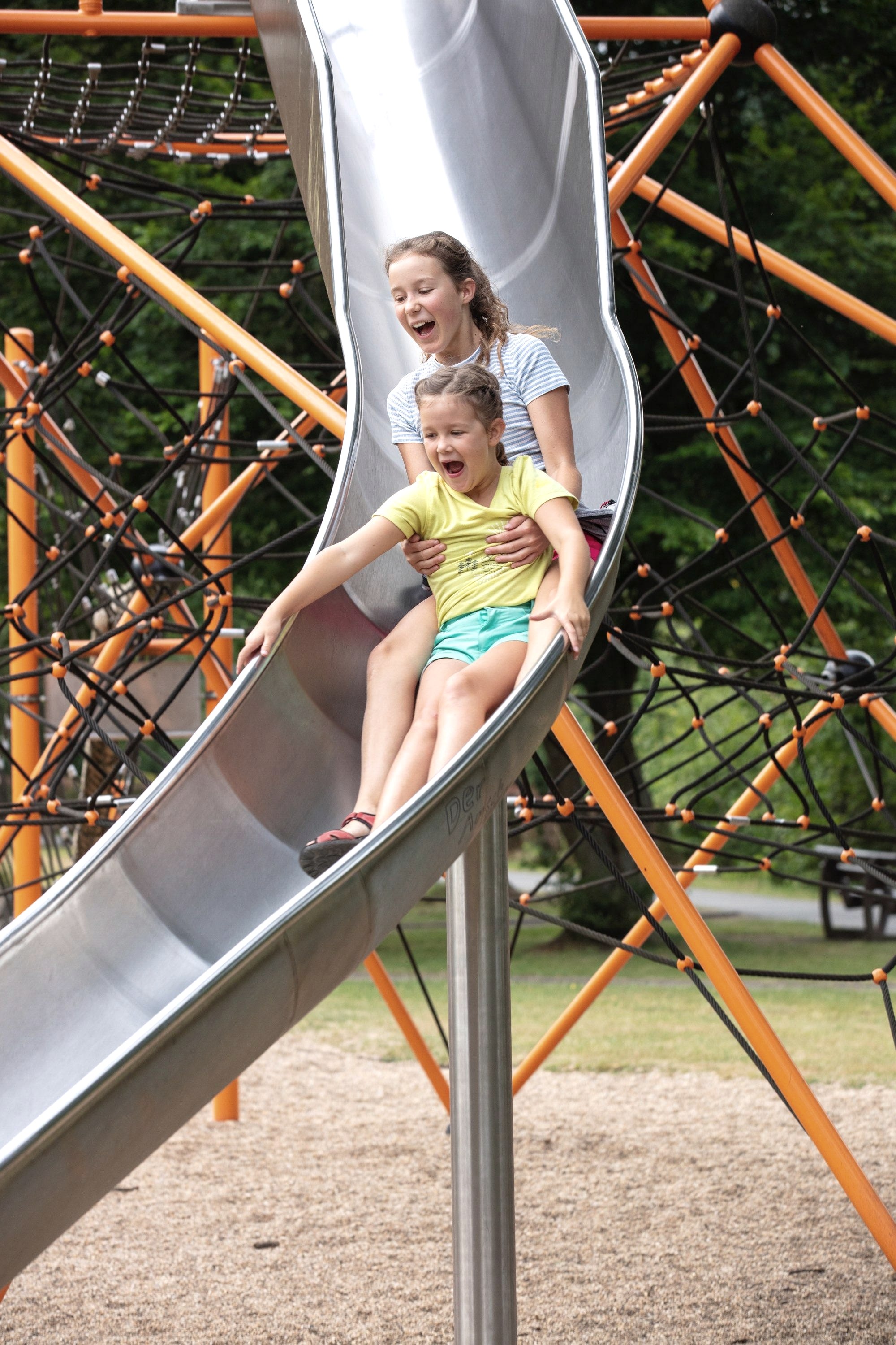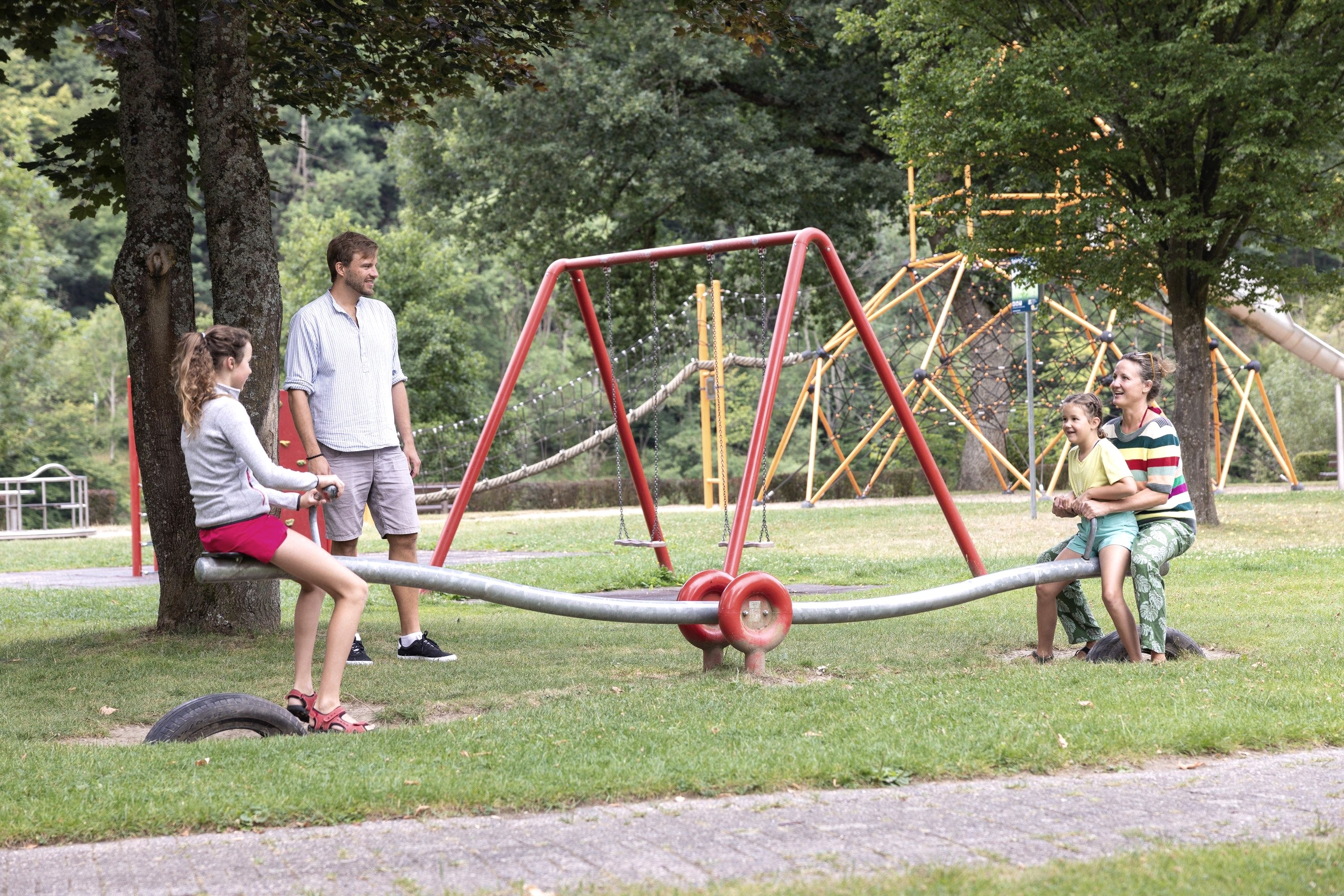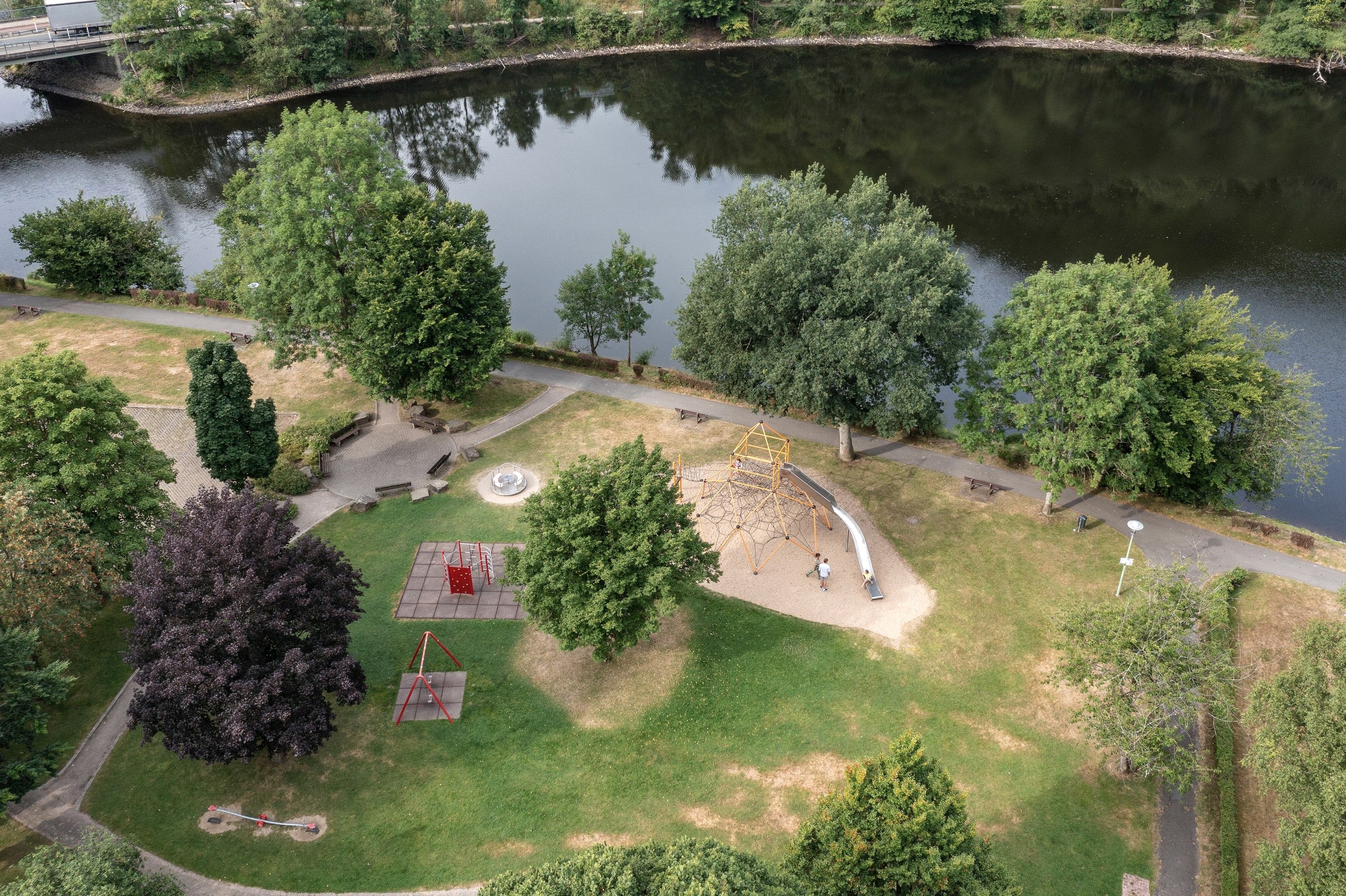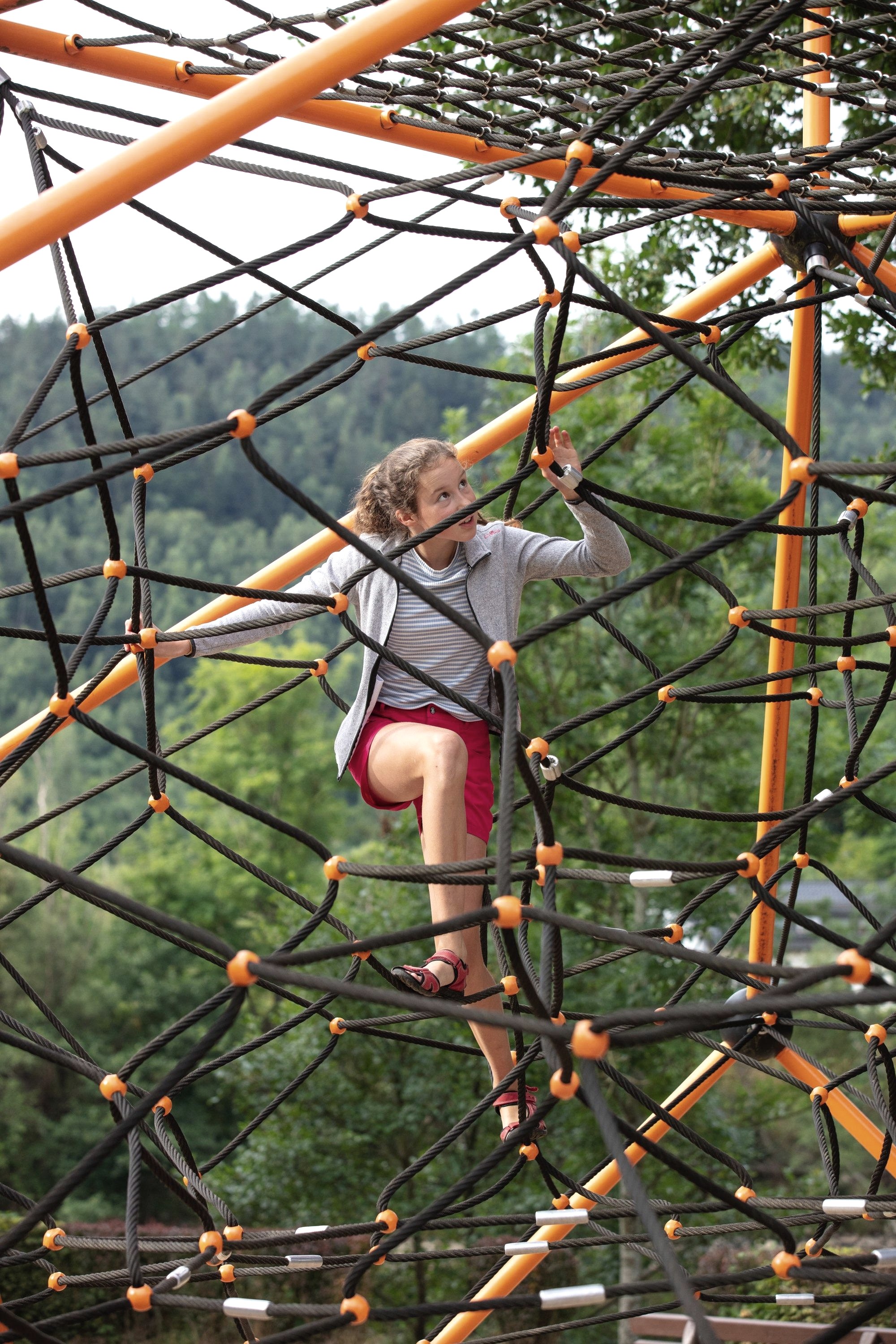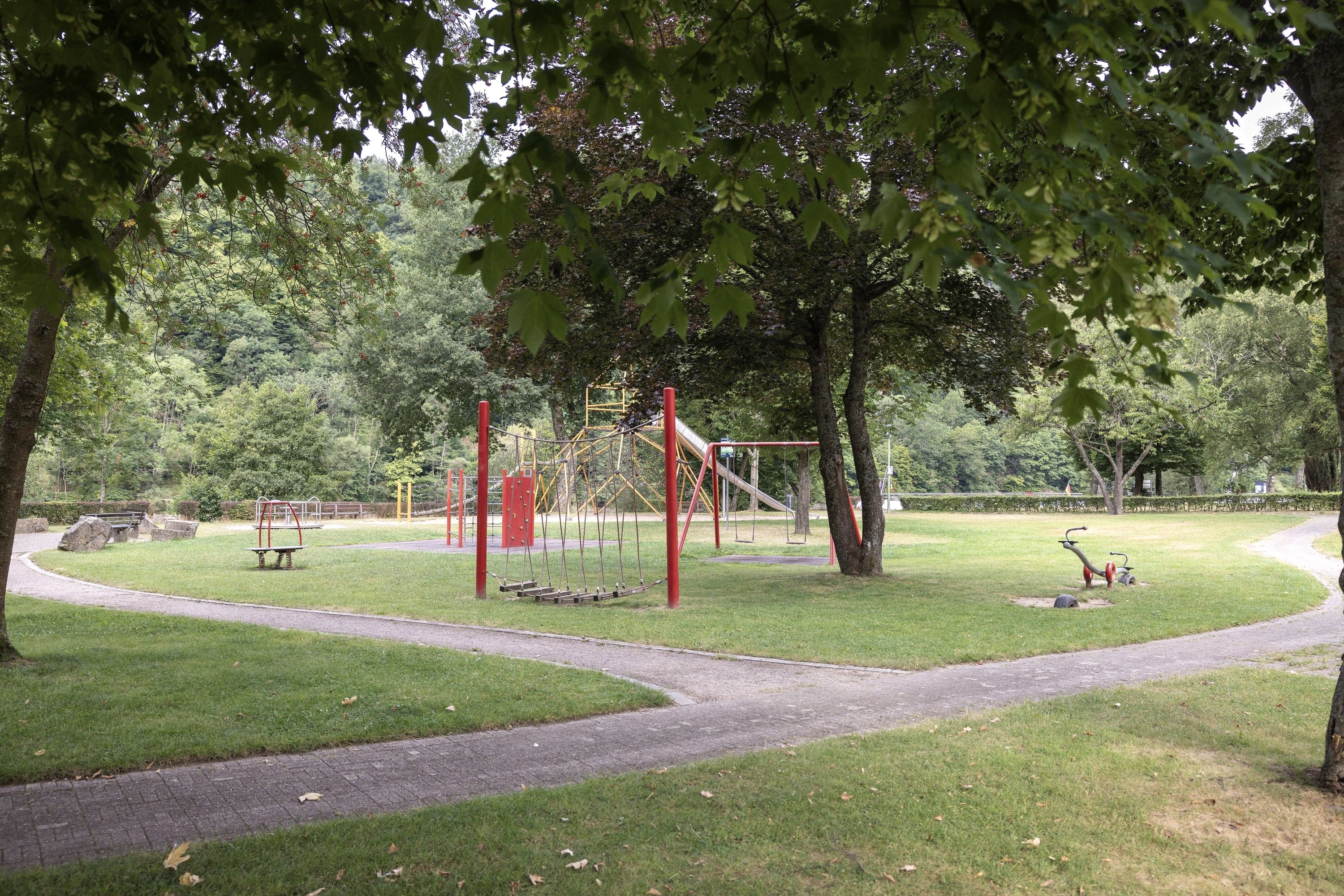Pure climbing fun! The large climbing pyramid is the highlight on the playground on the lakeshore in Simmerath-Einruhr. Every small and large climbing monkey can let off steam here. The playground is freely accessible. In the surrounding area there are various restaurants and the Einruhr landing stage.