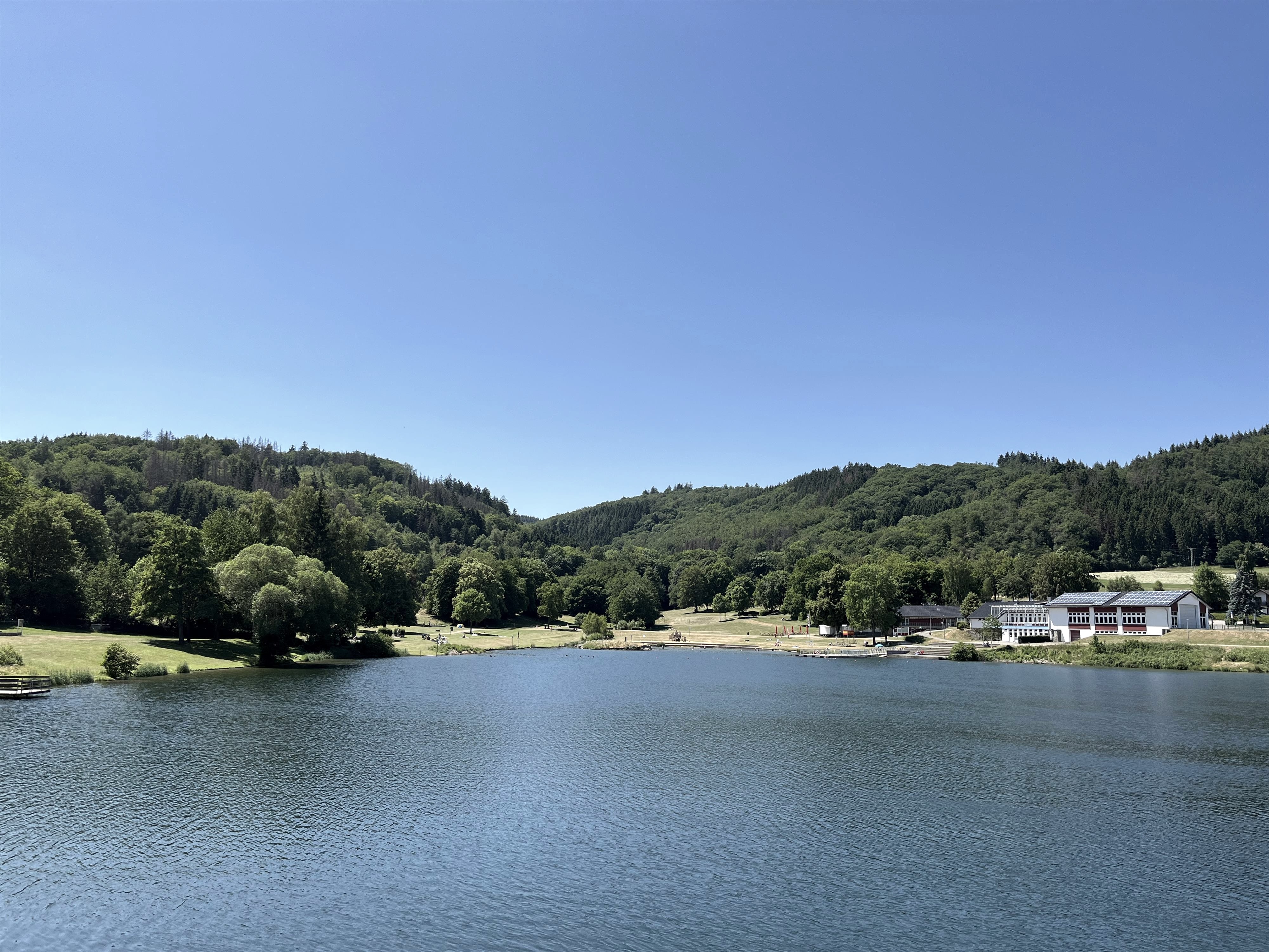 The water quality of the Eiserbachsee is regularly checked. During the summer holidays in Northrhine Westphalia and on the weekends (May-August), the DLRG (German Lifeguard Association) is on site. Sanitary facilities are located on the premises or in the closeby National Park Gate, which is within walking distance. There is a barrier-free toilet there.