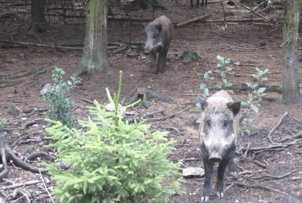 A strong pack of pigs moves through a light oak forest. Directly below the hiking trail along the Schleebachgraben, near the "Im Todt" parking lot, lies the community's wild boar park, which covers around 5 hectares. A refuge and numerous benches invite you to meet the black smocks in a wonderful location.