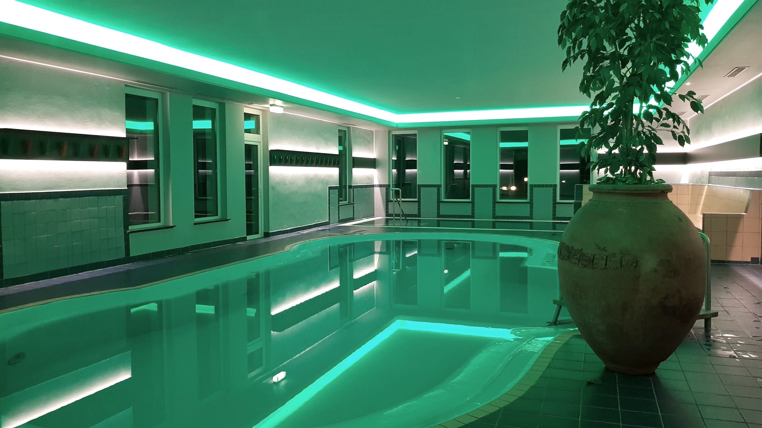 The wellness oasis "Roetgen Therme" with 7 saunas (including the Eifel sweat lodge, the Himalaya Kirstall salt sauna, the aroma bath and the flower bath, among others) and 5 pools is directly accessible from the hotel. The highlight is the large open-air seawater pool (heated all year round) in the 5000 m² thermal park.