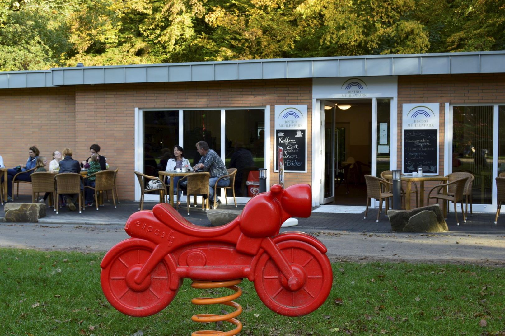 Enjoy a little time out in the middle of the natural recreation area Mühlenpark! In addition to hot and cold drinks, the menu also includes small, seasonally changing dishes. Tarte flambée, salads and baguettes are served. The freezer, which has ice cream on a stick, is very popular with the children. There is also fresh cake on display - in cooperation with a local bakery.