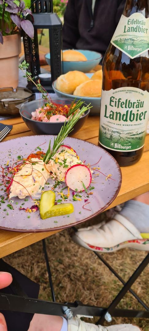 The beer garden is located inside the romantic castle complex. The castle is located directly on the "Eifelsteig" hiking trail and the "Eifelsteig Erlebnisschleife Säubrennerroute". Come in and enjoy the atmosphere during a break in the historic castle complex!