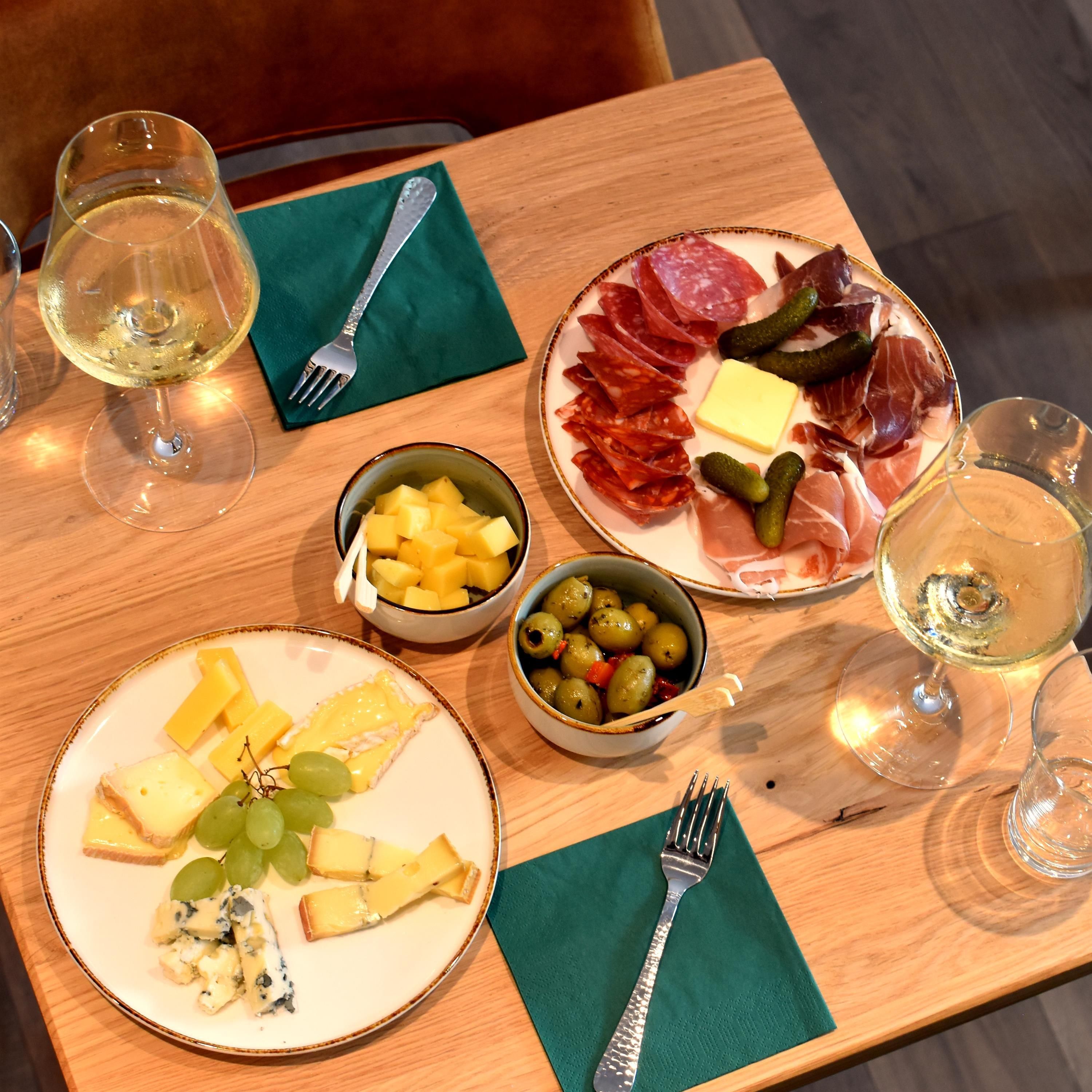 The open wines change regularly, so you can always try eight to ten different wines by the glass. To round off the wine experience perfectly, snacks are served to go with the wine. The selection includes olives with truffle cheese cubes, 5 different types of cheese and a ham and salami platter. Café variations and pastries from the patisserie are also on offer.