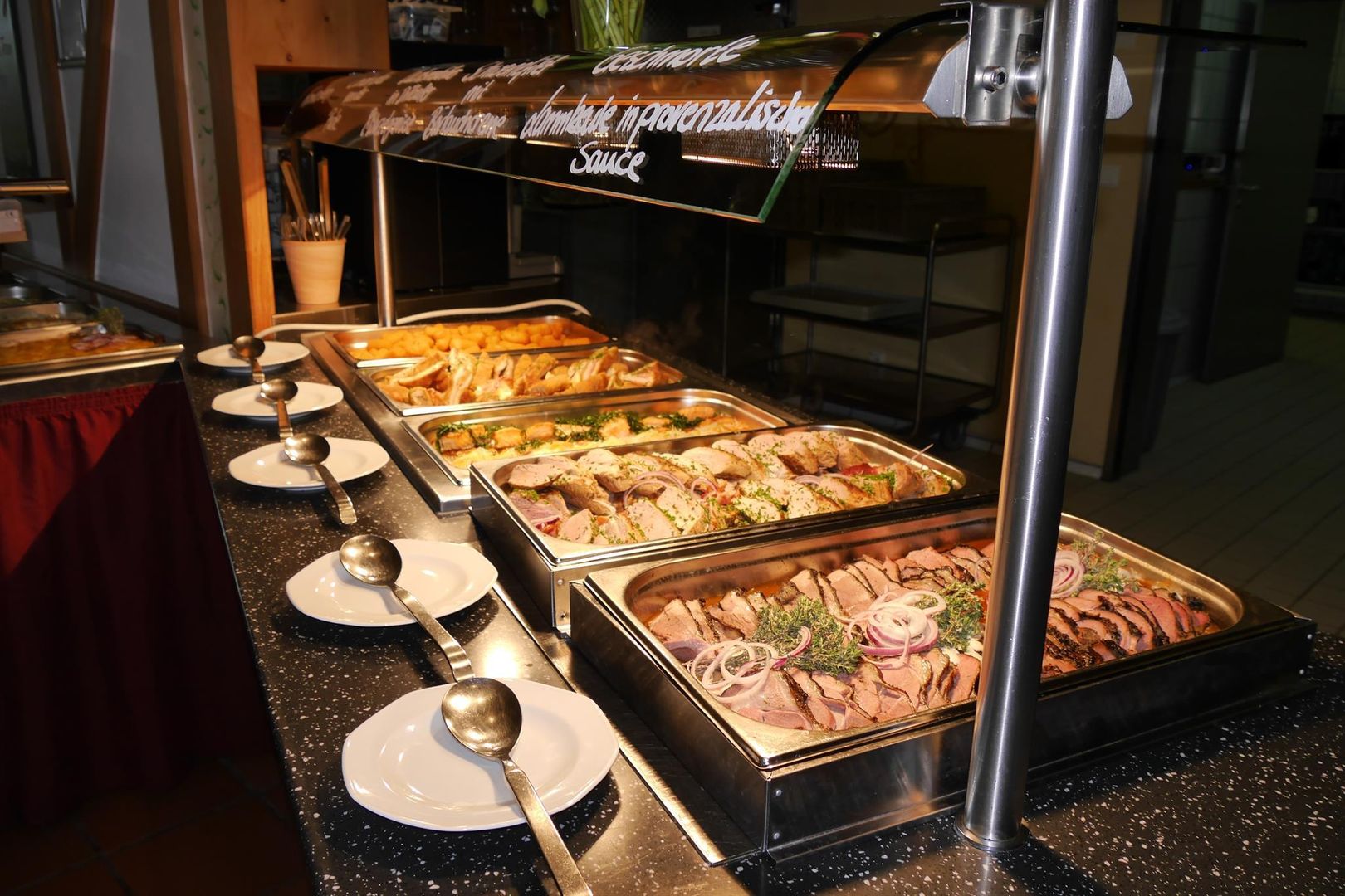 Here you can enjoy a rich culinary experience focused on regional and seasonal dishes. We offer a daily breakfast buffet, a lunch buffet, snacks and waffles in the afternoon, and an evening buffet. Look forward to fresh salads, changing soups, main courses with meat, fish, and vegetarian options, as well as a dessert buffet with pudding, yogurt, pastries, ice cream, and freshly made waffles.