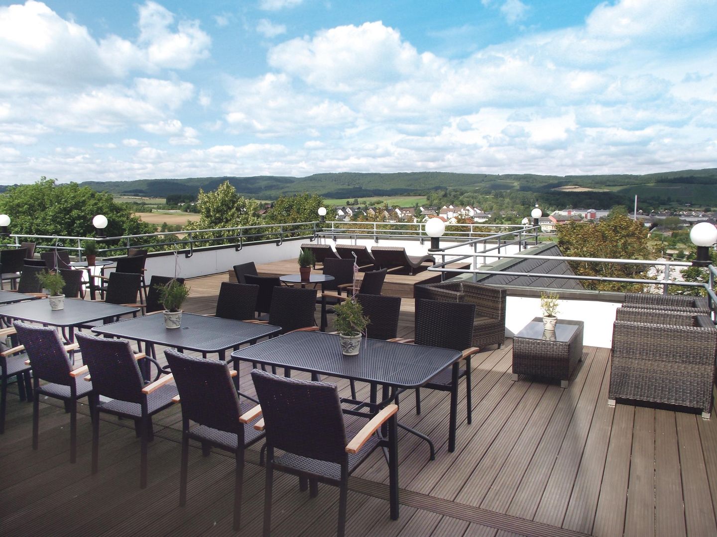 Fresh cuisine and natural service await our guests in the "Vulcano" restaurant. The garden at the edge of the forest is a place of relaxation. From the panoramic terrace our guests have a great view over the Wittlich valley. Five meeting rooms for a total of 300 people are available. In addition to business meetings and conferences, we are known as a perfect place for private celebrations.
