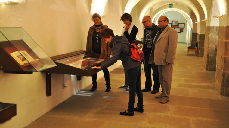 The Abbey Museum which is situated in the vaulted cellars of the abbatial palace of 1727 and displays facsimiles of the most beautiful manuscripts created by the scriptorium of Echternach. It also offers a survey of the life and work of St Willibrord. The exquisite beauty of the rooms as well as the fine quality of the exhibits and of the audiovisual shows make each visit of the Abbey Museum a memorable experience.
