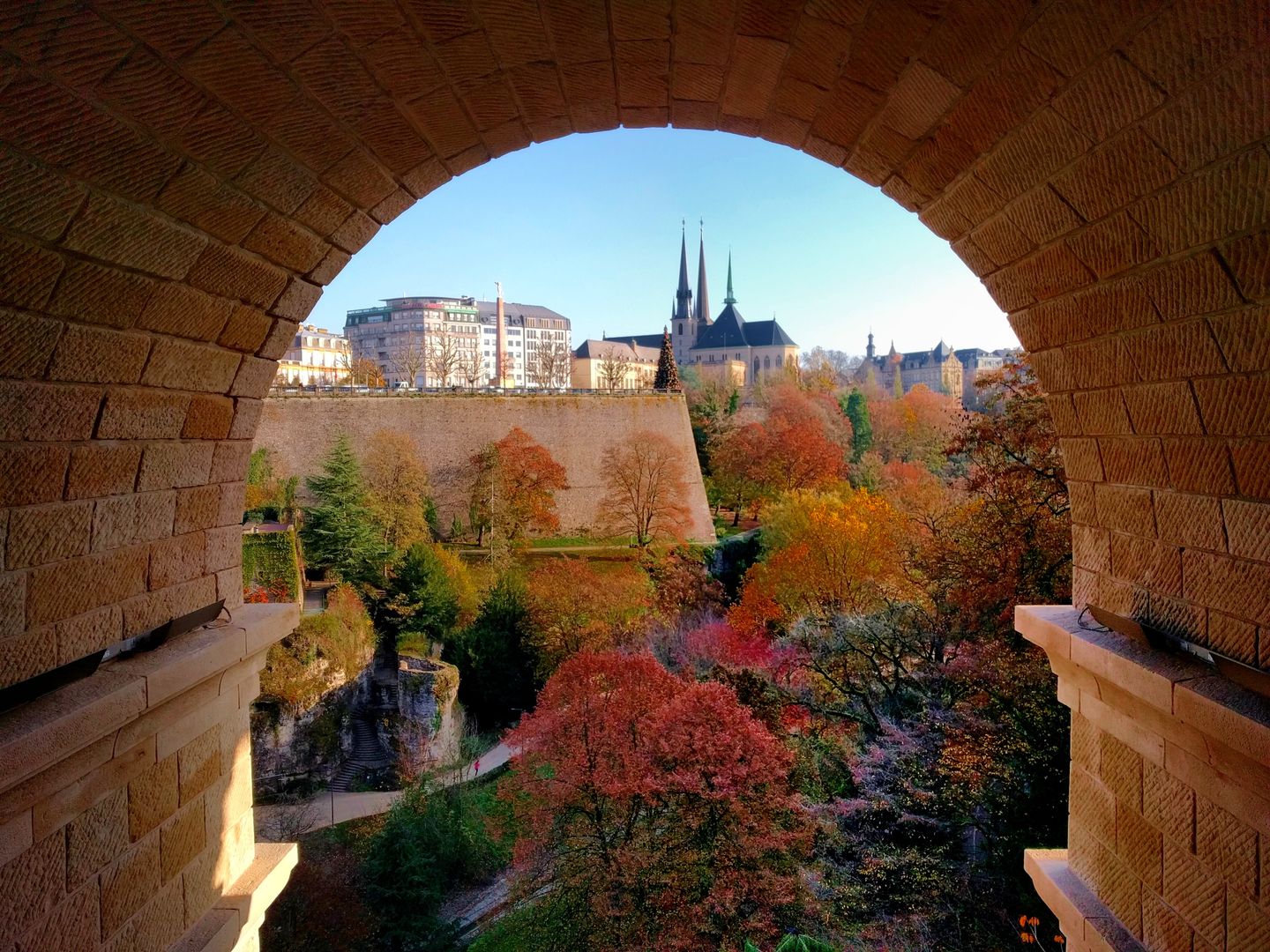 On the Constitution Square the "Gëlle Fra" set-up in 1923 to commemorate the fallen soldiers of the First World War.The monument is a symbol of the freedom and resistance of the people of Luxembourg.