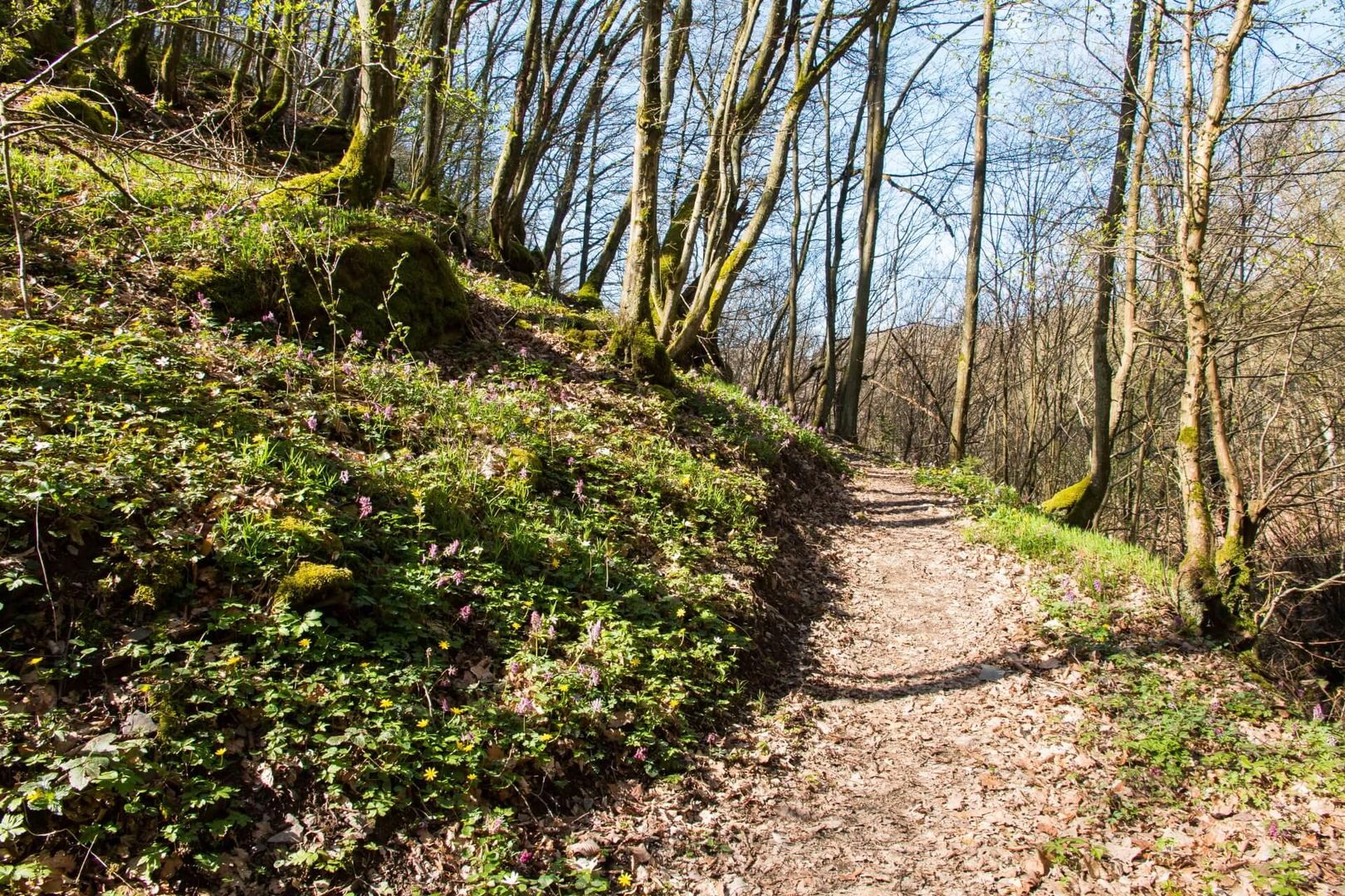 The first station is the chapel "Hammes Heiligenhäuschen". This saint's hut was built by the Hammes family about 200 years ago for religious reasons and in gratitude for help with illnesses. At the badger burrows, which are the second point of experience, you can catch a glimpse of a shy badger leaving its burrow at night with a bit of luck. With calm and patience, tree hawks and pearl grass butterflies can be observed at the third experience point, the heath area where heather and the rare forest hyacinths grow. Station four offers the opportunity to take a rest break with spectacular views. While their legs dangle from the forest sofas, visitors can venture a look deep down into the Üssbach valley. The further stretch of the Achterhöhe adventure trail leads through a coppice forest typical of the Eifel, which forms adventure point five. The sparse forests are the result of thousands of years of cultivation. At adventure point six, the industrious workers of the red forest ant have built mounds up to two metres high. A wetland biotope and the Three Oaks Hut together form the seventh station, where you can observe grass snakes and adder in their natural habitat.