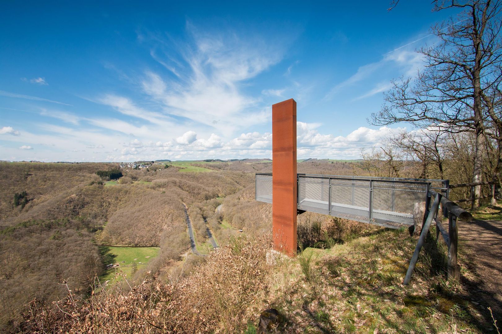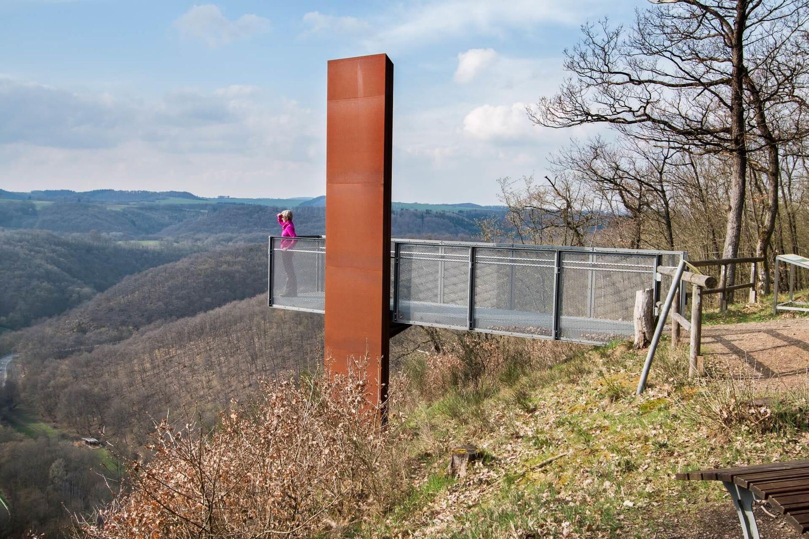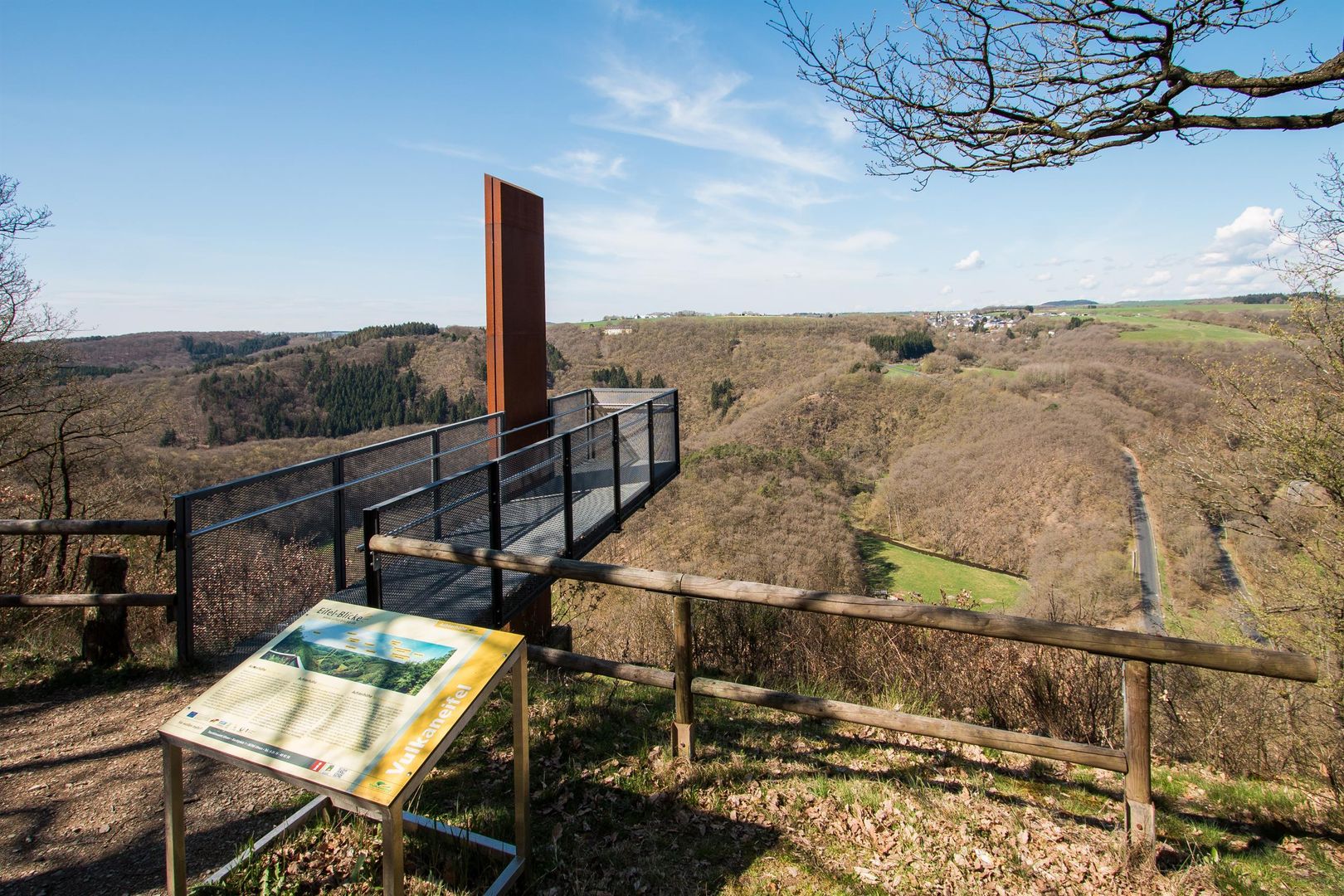 Since 2012, hikers have been able to enjoy a fantastic view from the Achterhöhe near Lutzerath. From the viewing platform at Siebenbachblick, a bridge construction that requires a head for heights, you can see the Üssbach flashing through the trees exactly seven times. Tired calves can relax on a forest sofa.