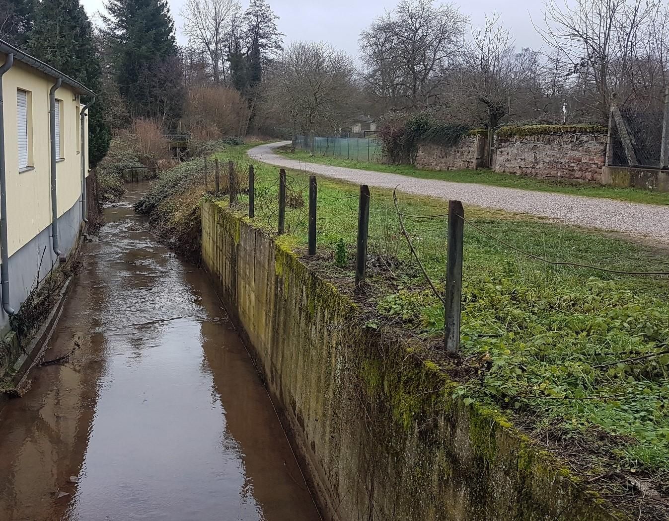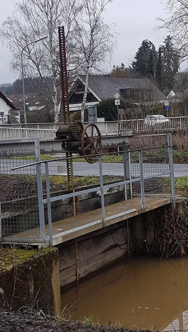 Today you can still see the mill pond, a canal that was created for the operation of the water mill. The canal branches off water from the natural course of the Lieser above the mill and feeds a part of it as impact water to the mill. The feeding part of the mill ditch is called the Obergraben. The natural river bed is preserved and serves as a bypass. Below the mill, the channel rejoins the Lieser. This part of the Mühlengraben is called Untergraben. The outlet from a main watercourse, the Abschlag, is regulated by a weir, also called Wehrgraben, here Bürgerwehr.