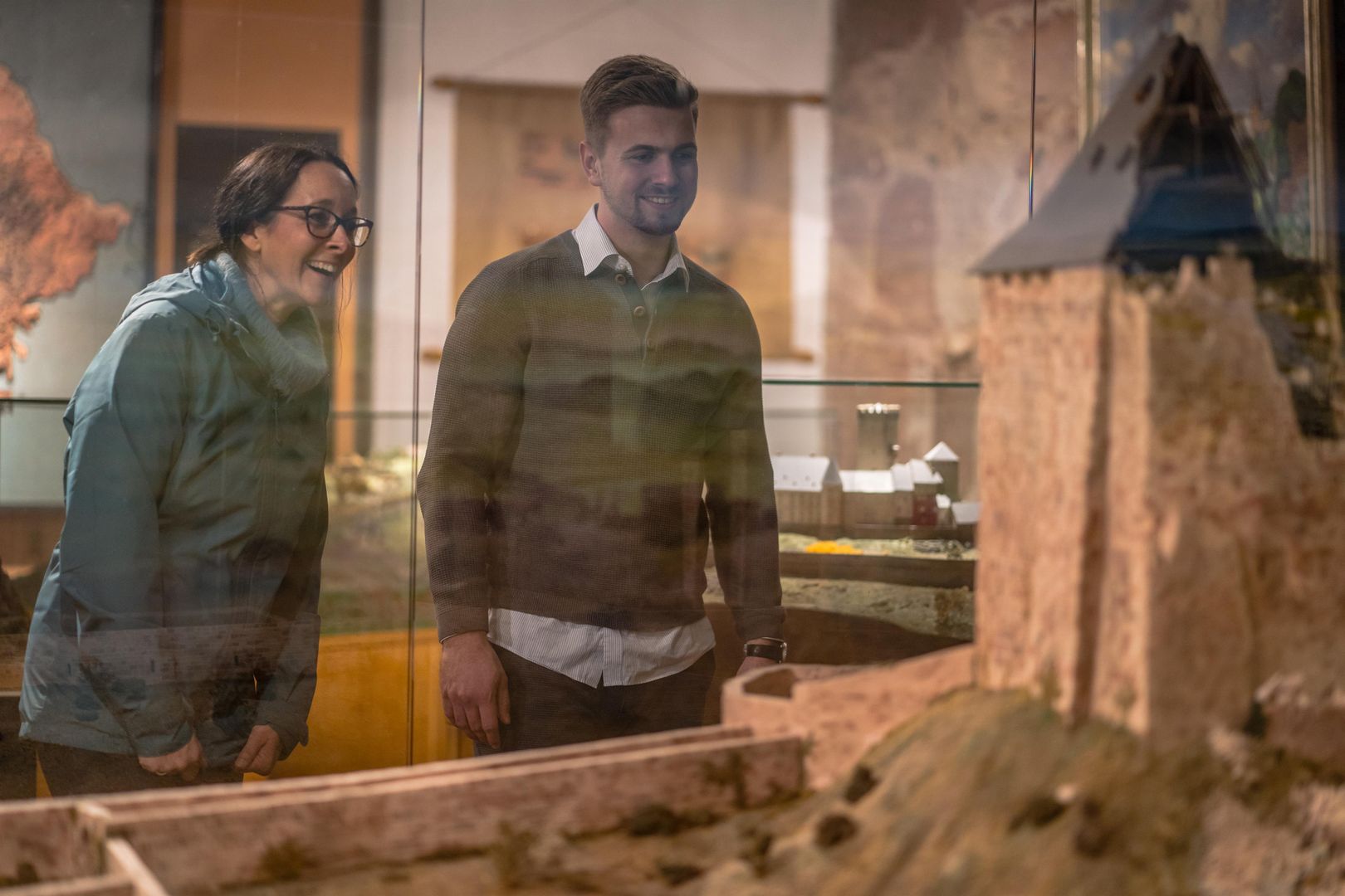 The Nideggen Castle Museum welcomes you on your discovery tour of the Middle Ages. In the exhibition rooms you will go on a cultural and time travel into the world of everyday life in a medieval castle and experience chivalry and the economic culture of the Middle Ages in an authentic setting. In the dungeon, you can find out what fate befell the prisoners of Nideggen Castle. In a 9-square-metre multimedia presentation, you become a participant in castle life and witness the destruction of the castle at first hand. The Castle Museum offers an extensive programme of events as well as workshops and guided tours for school classes, families and adults. It is also possible to get married in the keep's chapel.