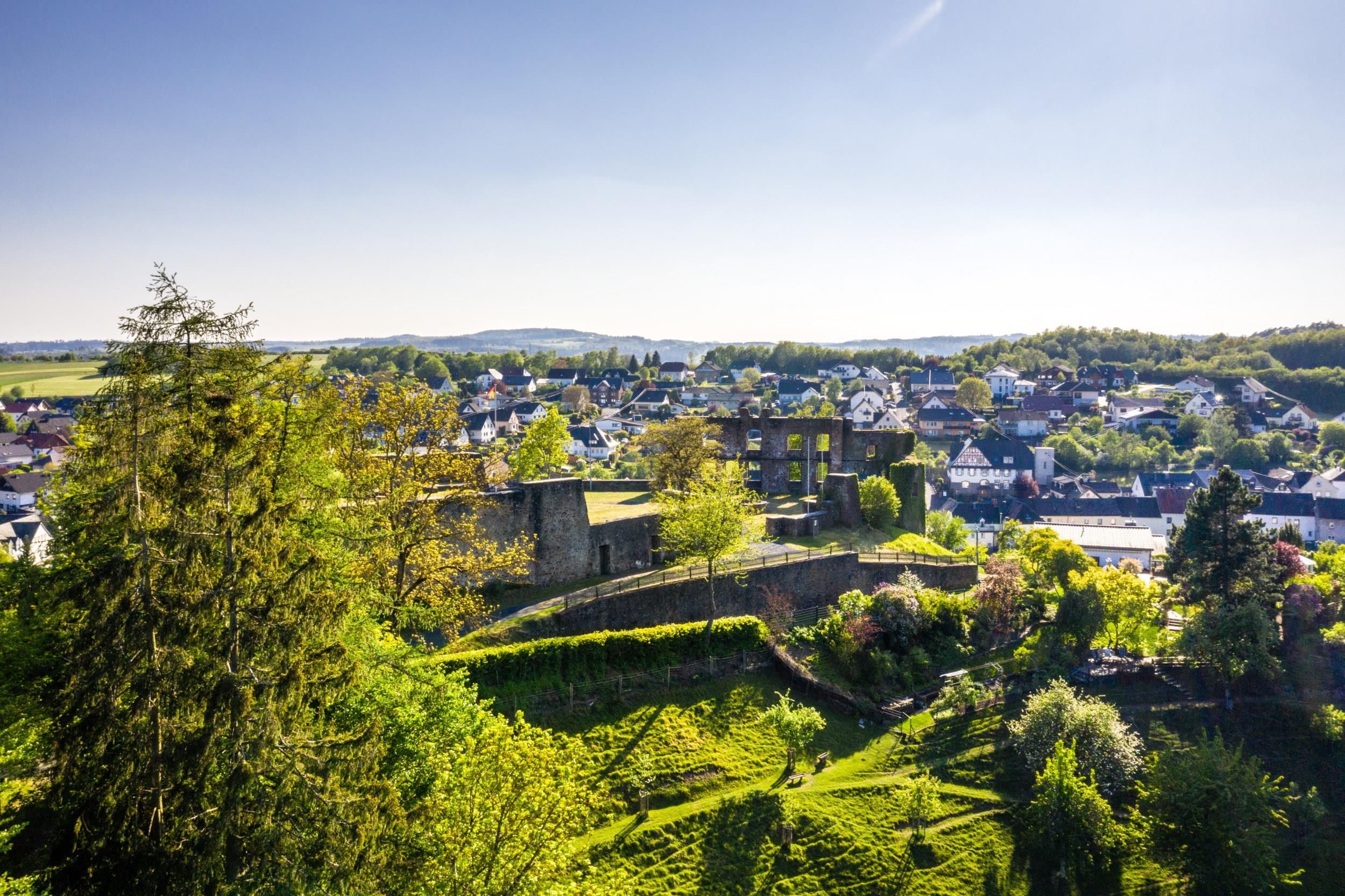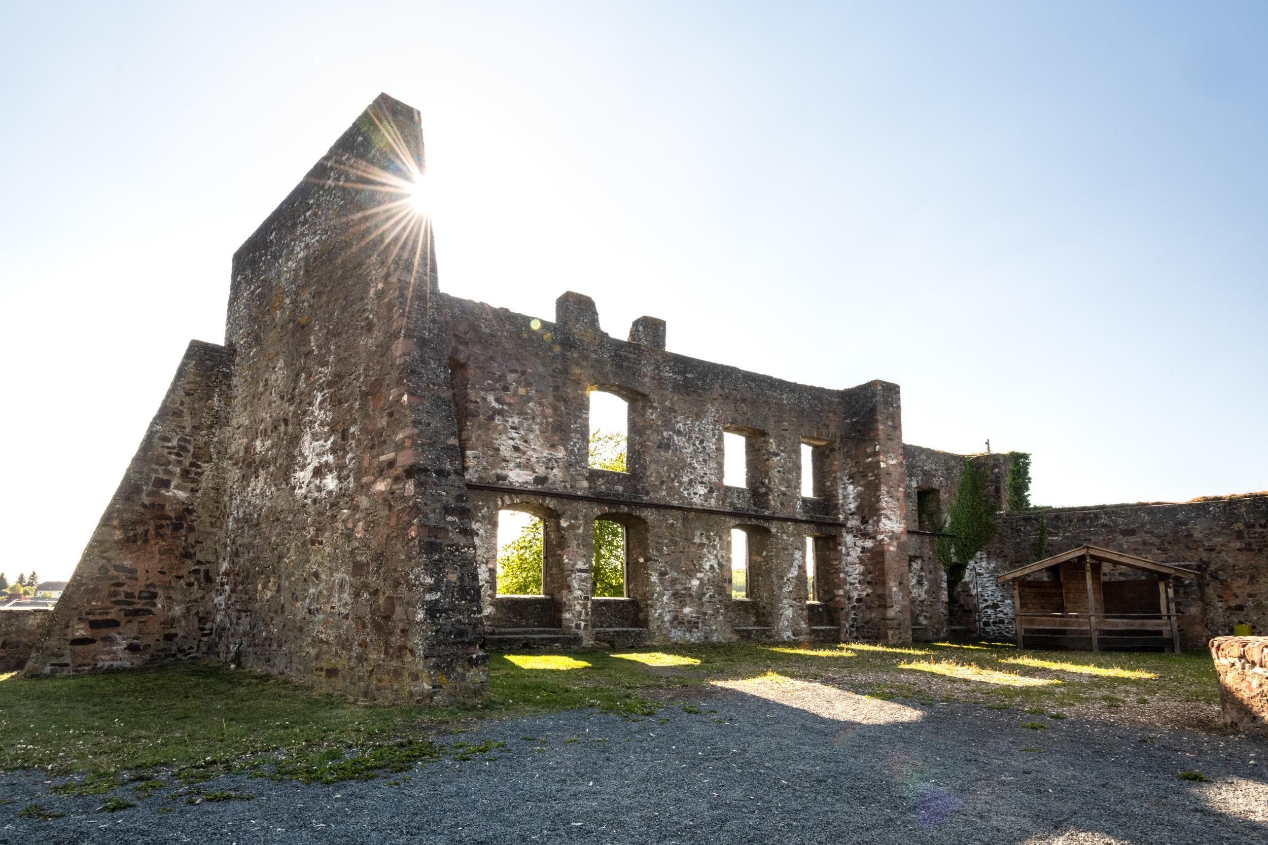 The lower castle has completely disappeared. The beginnings of the ring, which was connected to the lower castle and the city wall of Ulmen, can still be seen, as well as a two-storey outer wall of the palace, a cistern and a few foundation walls of other buildings. The old part of the castle in Ulmen was built around 1,074 AD and very probably rests on the remains of a Roman settlement. In the Middle Ages, the castle in Ulmen was further extended and divided into the upper castle, the wall remains of which still exist, and the lower castle, which extended to the banks of the Maar. Two knightly dynasties inhabited the castle, which is believed never to have been attacked or destroyed until 1673 due to its size. Only the troops of the Sun King managed to do so. It was rebuilt, only to fall again in the War of Succession in 1689. But this time, too, Ulmen Castle was rebuilt, only the city wall was abandoned. The invasion of Napoleon's soldiers also caused Ulmen to become French and later Prussian. The empty castle, whose last descendant died in 1801, was sold at auction to a Cochem merchant who marketed it as a quarry. When a devastating fire burnt down Ulmen in the 19th century, the people of Ulmen rebuilt their houses with stones from the castle. That is why you can still see a coat of arms on many a stable today. It was not until the beginning of the twentieth century that Ulmen Castle was placed under a preservation order and became the property of the local community of Ulmen. The castle is freely accessible at all times.