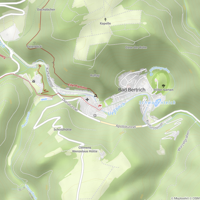 An RWE charging station directly at the Bad Bertrich Kurhaus is available all year round. Charge your e-bike battery at the tourist information office.