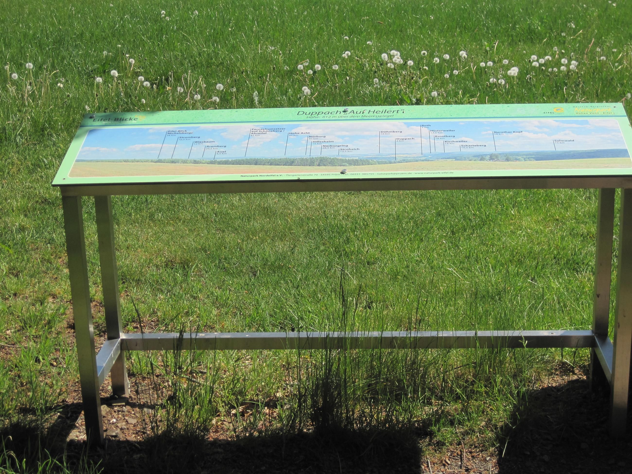Der Eifelblick " Auf Heilert" liegt auf dem Höhenzug des duppacher Rückens auf einer Höhe von 612 metern über dem Meeresspiegel. Von hier aus bietet sich nach Norden ein eindrucksvoller Blick bis zur Nürburg mit Nütburgring. Bei guter Sicht erkennt man den Michelsberg bei Bad Münstereifel, der rund 35 km entfernt ist. Im Osten erkennt man die Vulkankegel im Raum Gerolstein und Daun, sowie den Höhenzug des Salmwaldes.