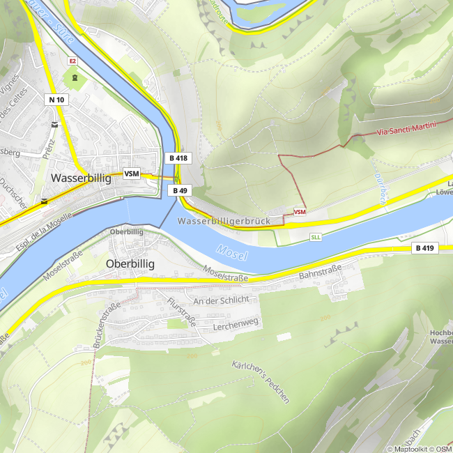 Once we arrive in Moersdorf, we use the pedestrian bridge to get to the German side. From here, we head downstream back to our starting point in Wasserbilligerbrück.