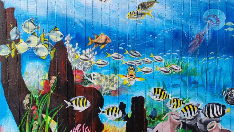 We continue past the jetty to the train station. The graffiti on the walls of the railway underpass is certainly worth a photo.
