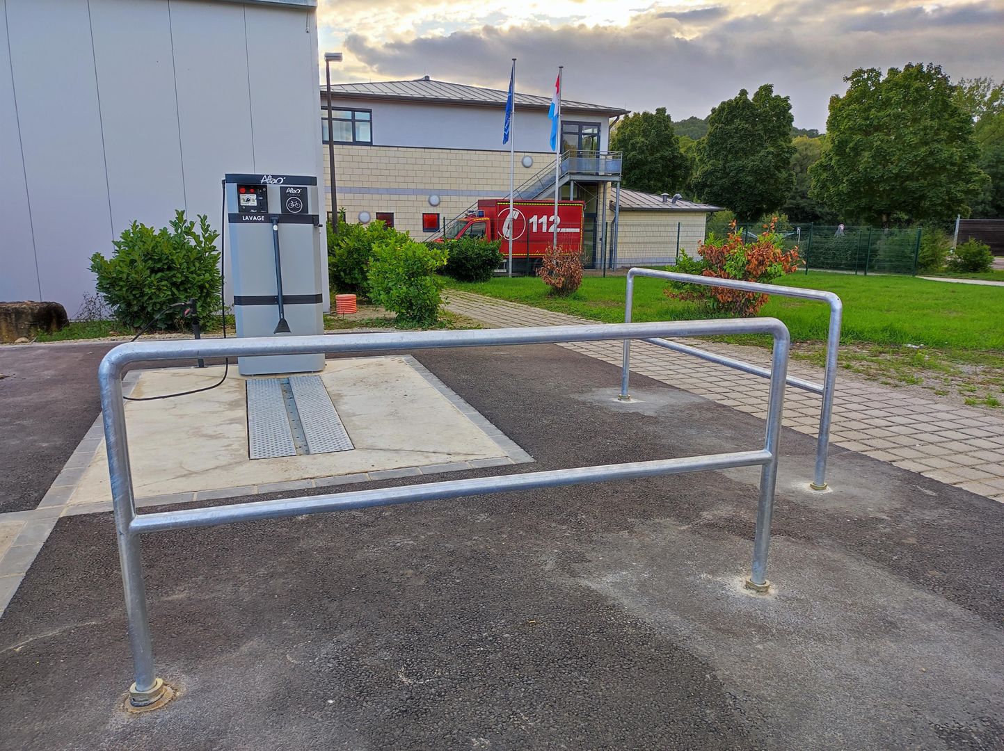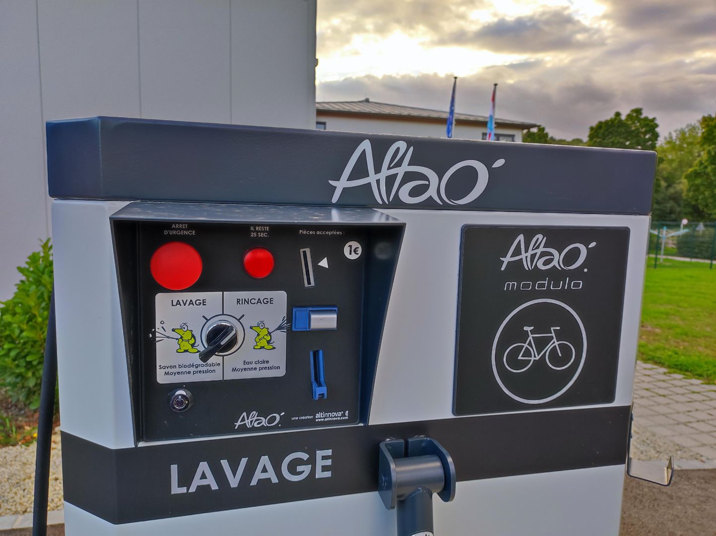 The modern bike wash station is always accessible and a cleaning costs 1€ for 90 seconds.