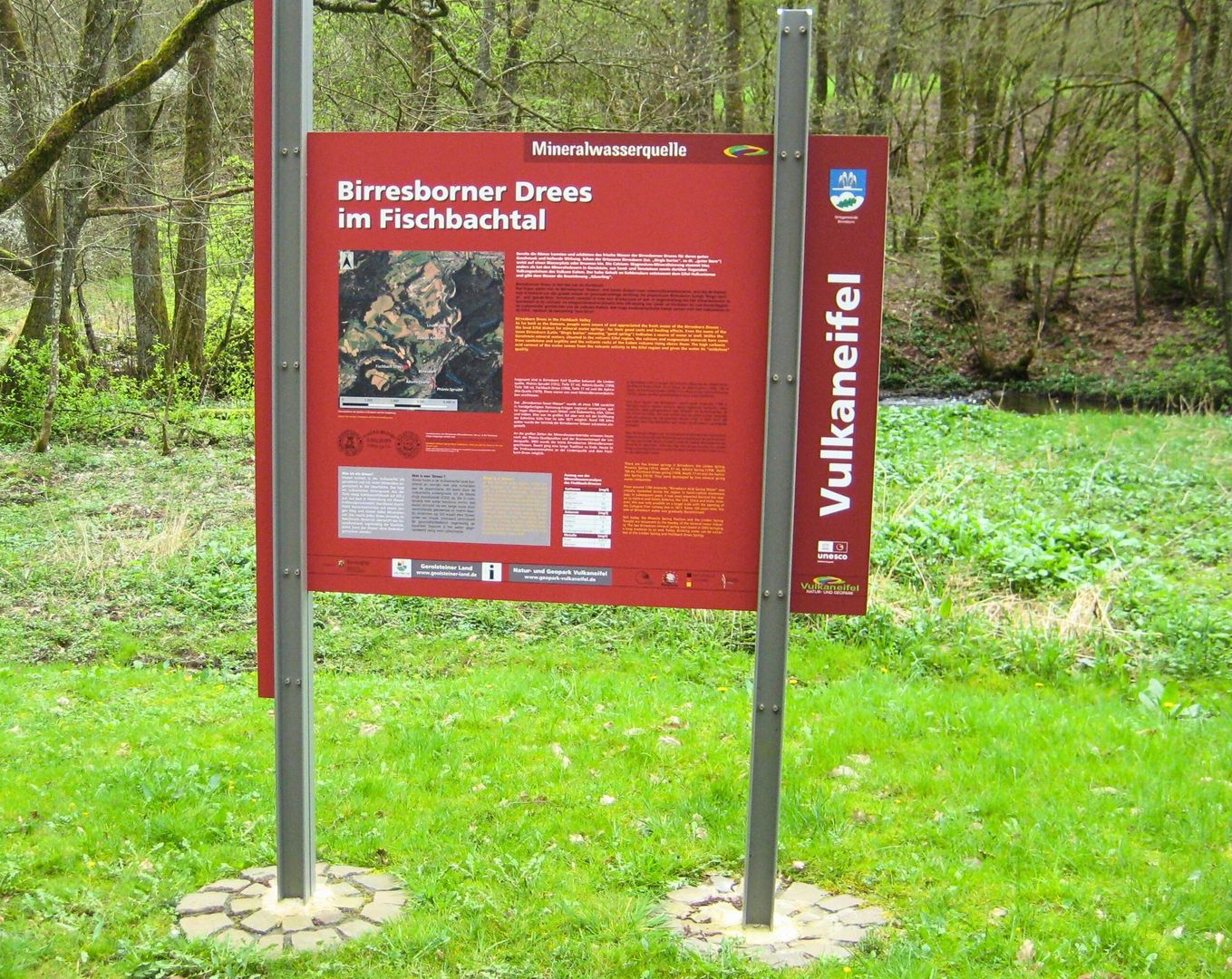The magnesium-calcium mineralisation here comes from sandstone and claystone as well as overlying volcanic rock. The high content of carbonic acid originates from the Eifel volcanism and gives the water the name ‘Säuerling’ (acidulous). A total of five springs are known in Birresborn, several of which were of great economic importance. Today, drinking water can be taken from the Lindenquelle and the Fischbach-Drees.