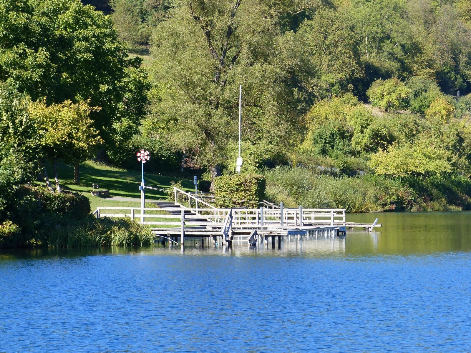 Carefree and relaxing hours await at the Schalkenmehrener Maar natural swimming pool. A baby pool with sun protection and benches for parents is available for the youngest guests. A fenced toddler pool with a maximum water depth of about 100 cm provides safe fun. A diving board and a water slide, added in 2016, offer action for active swimmers.