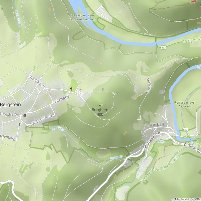 The Krawutschke Trail, about 9 kilometres long, runs between Obermaubach and Zerkall and takes you once over the Burgberg. Once you have reached the top, the Krawutschke Tower, which is about 13 metres high, awaits you with a fabulous panorama of the Eifel mountain ranges. Let your gaze wander over the Rur and Kall valleys. In good weather, you can even make out the silhouette of Cologne. After a short rest, head downhill towards Zerkall, from where you can take the Rurtalbahn or walk along the water back to the starting point in Obermaubach.
