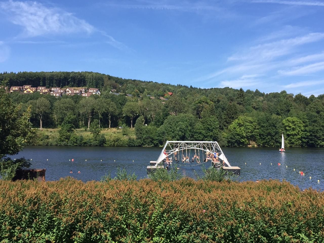 Created in 1973/77 as recreational water, the lake also serves as a rainwater retention basin for the flood waters of the Kyll and Taubkyll rivers.