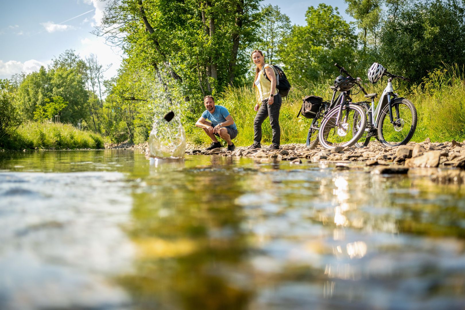 New path connections and the redesign of the park make the water “tangible”. The Kyll makes its way through the spacious landscape with benches and a central barbecue area - if you like, you can cool off here in warm temperatures. Whether you want to relax on the meadow or take a walk around the park, there is something for everyone here. The nearby Kyll cycle path also invites you to take a bike tour.