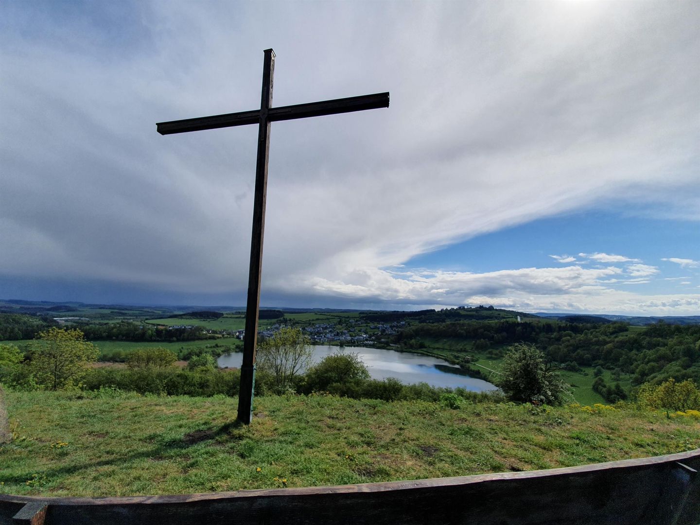 Above the Schalkenmehren Maar, a summit cross thorns at 534.5 metres above sea level. Like everything else, this cross has a history and is no longer in its original place.