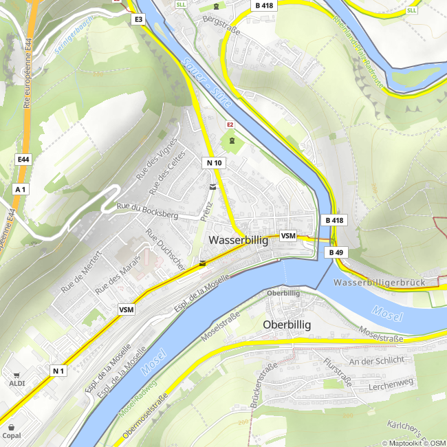 Since 01 August 2023, 60 public parking spaces for cars have been available to visitors to Wasserbillig in the multi-storey car park (underground car park) of the "Neue Mitte" residential complex, including four disabled parking spaces.
