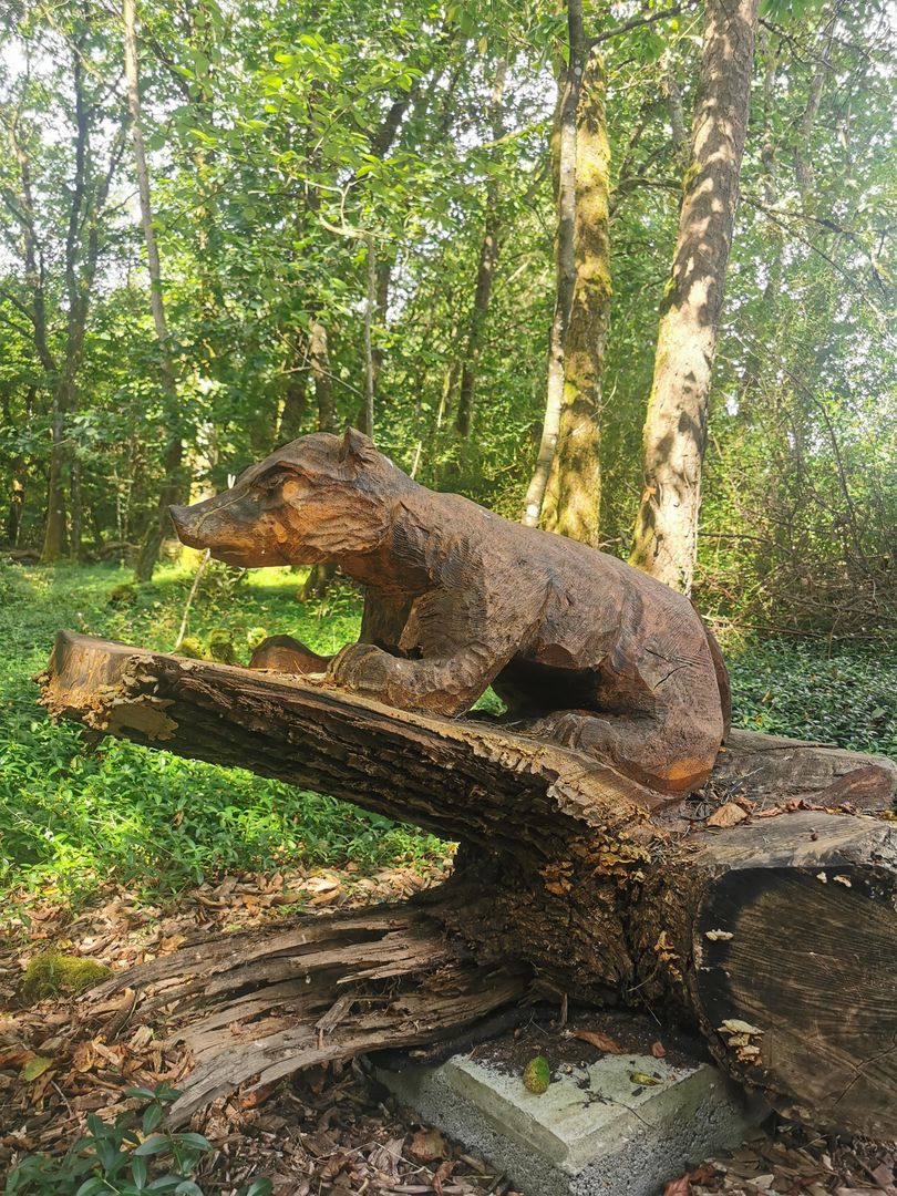 A rest area focussing on the region's wildlife, complemented by wooden figures and information boards, is an attractive attraction for visitors and hikers on the HeimatSpur Wacholder-Kyll trail.
