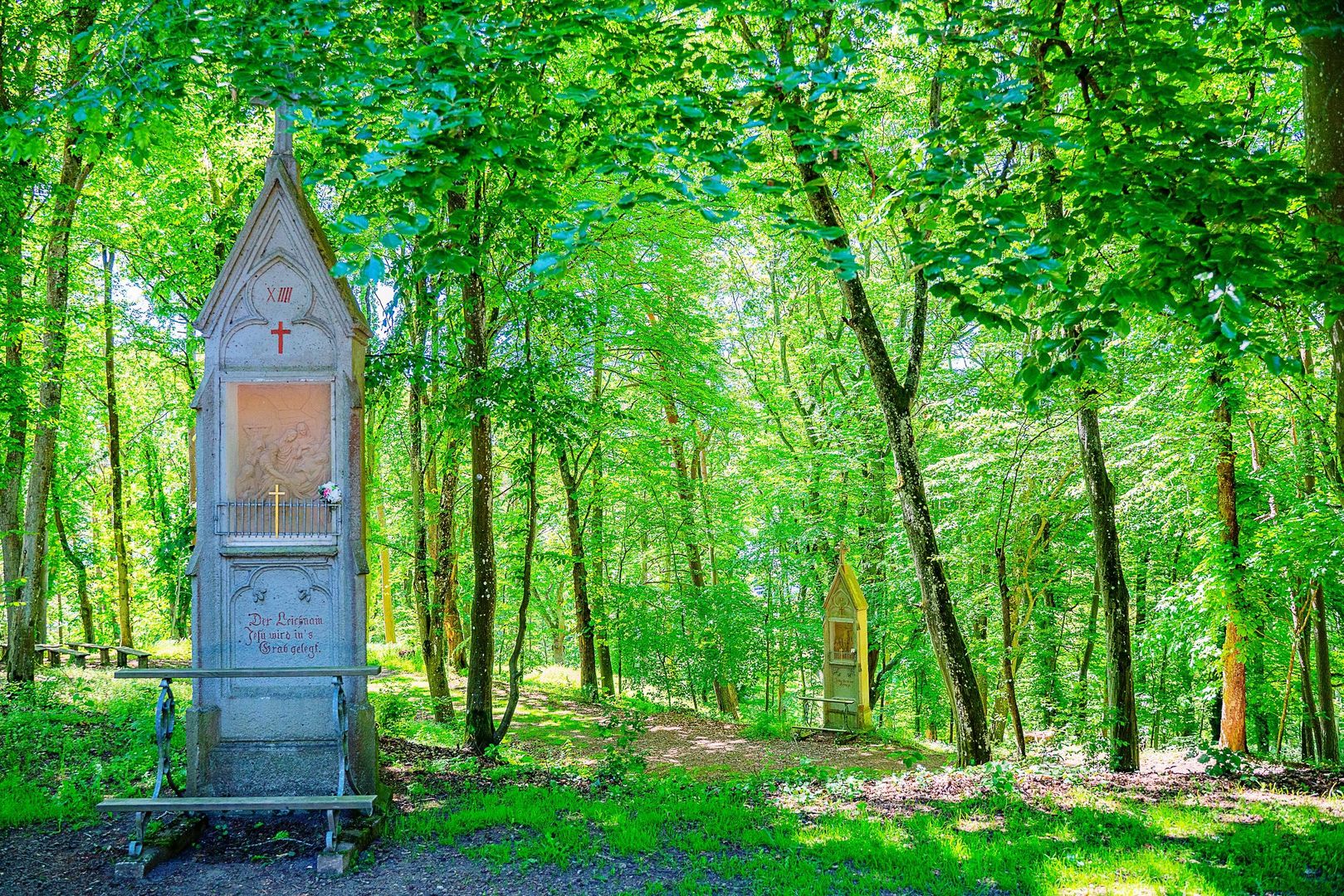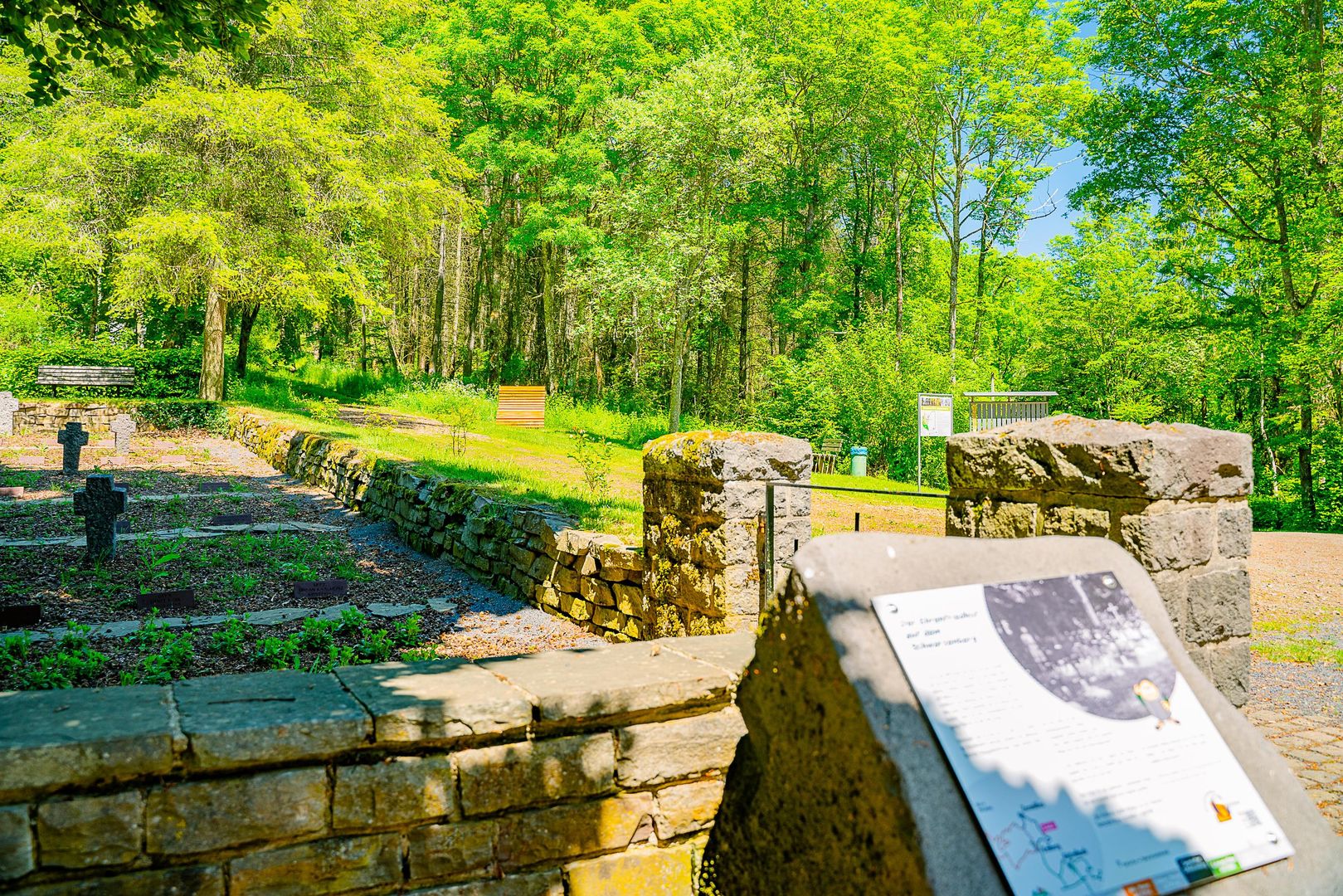 On the 562 m high Schwarzenberg, hidden in the forest, there is a chapel dedicated to the Sorrowful Mother of God. The Schwarzenberg Chapel was built in 1719. The altar with the Pietà in the middle section is framed by the saints Aloysius (right) and Augustine. Plaques of thanks and crutches on the walls indicate that the Schwarzenberg Mother of God was called upon and helped when she was sick. Next to the chapel is the heroes' cemetery with the graves of the soldiers who died in Kelberg in World War II. A little below there is the memorial for the soldiers of the First and Second World Wars.