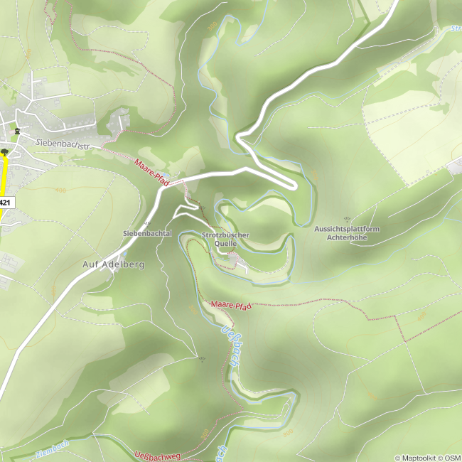 The "Strotzbüscher Quelle" (Strotzbüch spring) in the Ueßbachtal valley is one of the warm mineral water springs. Not far from Strotzbüch, located in the Westeifel-Moseltal area, hikers will find the warm spring of almost 20°C, as a spring in the southern area of the Volcanic Eifel.