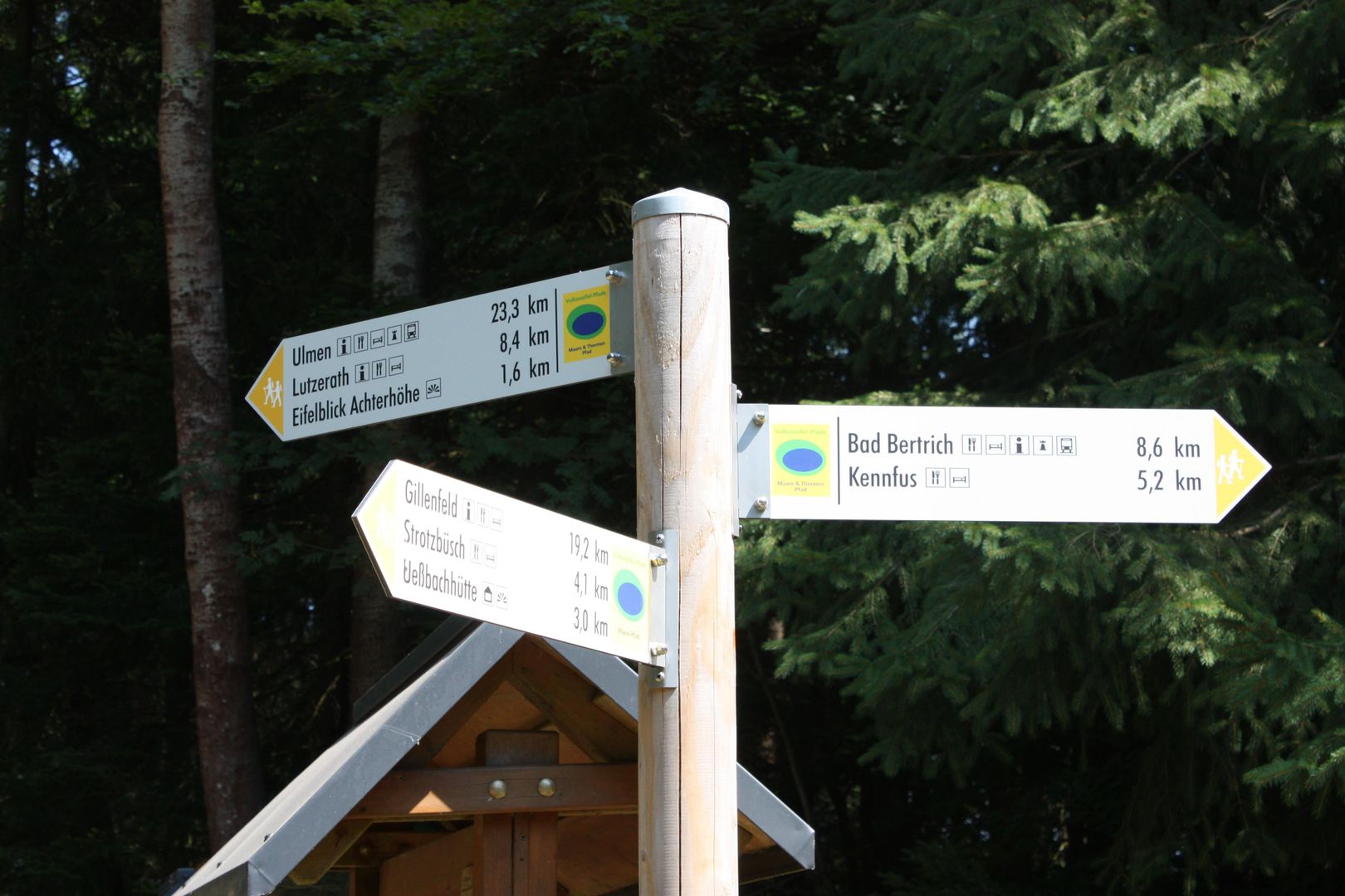 Lutzerath is a small, idyllic resort. You can enjoy the most beautiful view from the Eifelblick Achterhöhe, one of the most popular vantage points in the Volcanic Eifel. Hiking around Lutzerath is a pleasure. The Maare-und-Thermen-Pfad, the Zwei-Täler-Weg and the Erlebnisweg Achterhöhe are not among the most beautiful hiking trails in Germany for nothing.
