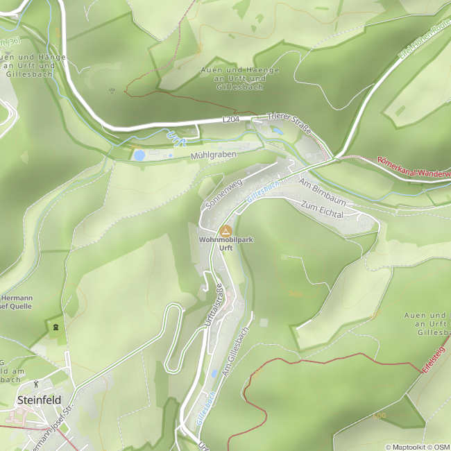 In an idyllic location in Urft, municipality of Kall, on the edge of the Eifel National Park and close to the Eifelsteig, you will find our motorhome parking space with 10 parking spaces.