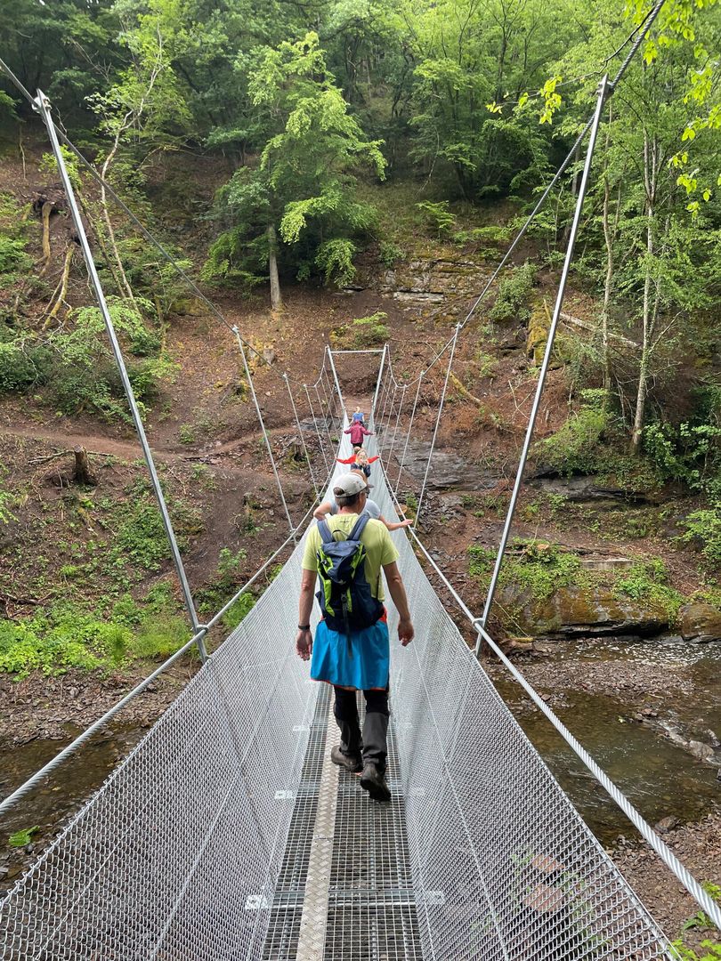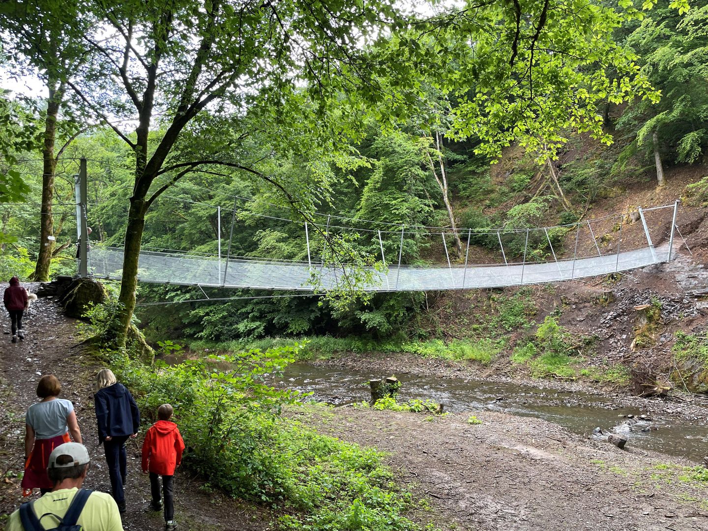 The Wäschebach bridge had to be rebuilt after the floods in summer 2021. The search was on for a long-term solution that would be flood-resistant. Since 18 May 2022, it has now been ceremonially opened as a suspension rope bridge made of galvanised steel.
