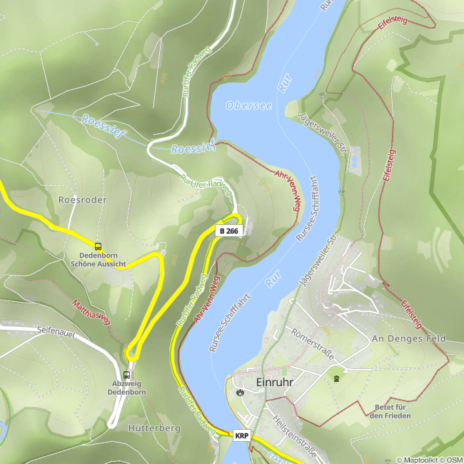 The hiking trail at Obersee can be accessed from the hiking car park at Hof Rösberg. From here you can walk along the picturesque banks to Rurberg or Einruhr. Various circular hiking trails start in both villages.
