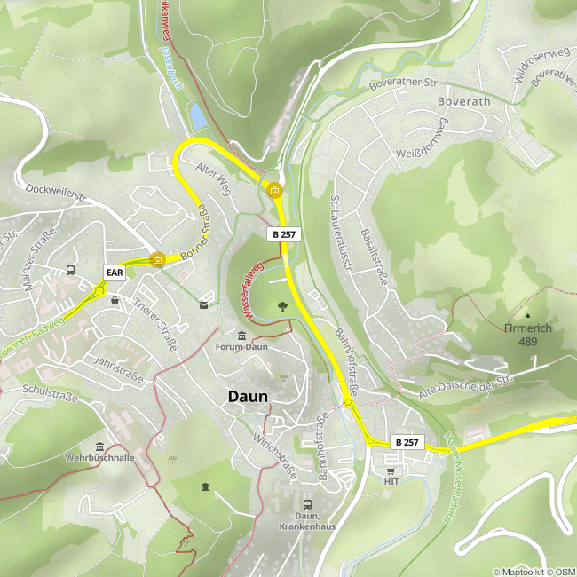 The motorhome park offers 43 demarcated pitches in immediate proximity to the Maare-Mosel cycling trail. All pitches have their own power supply. A central water supply and wastewater disposal are installed.